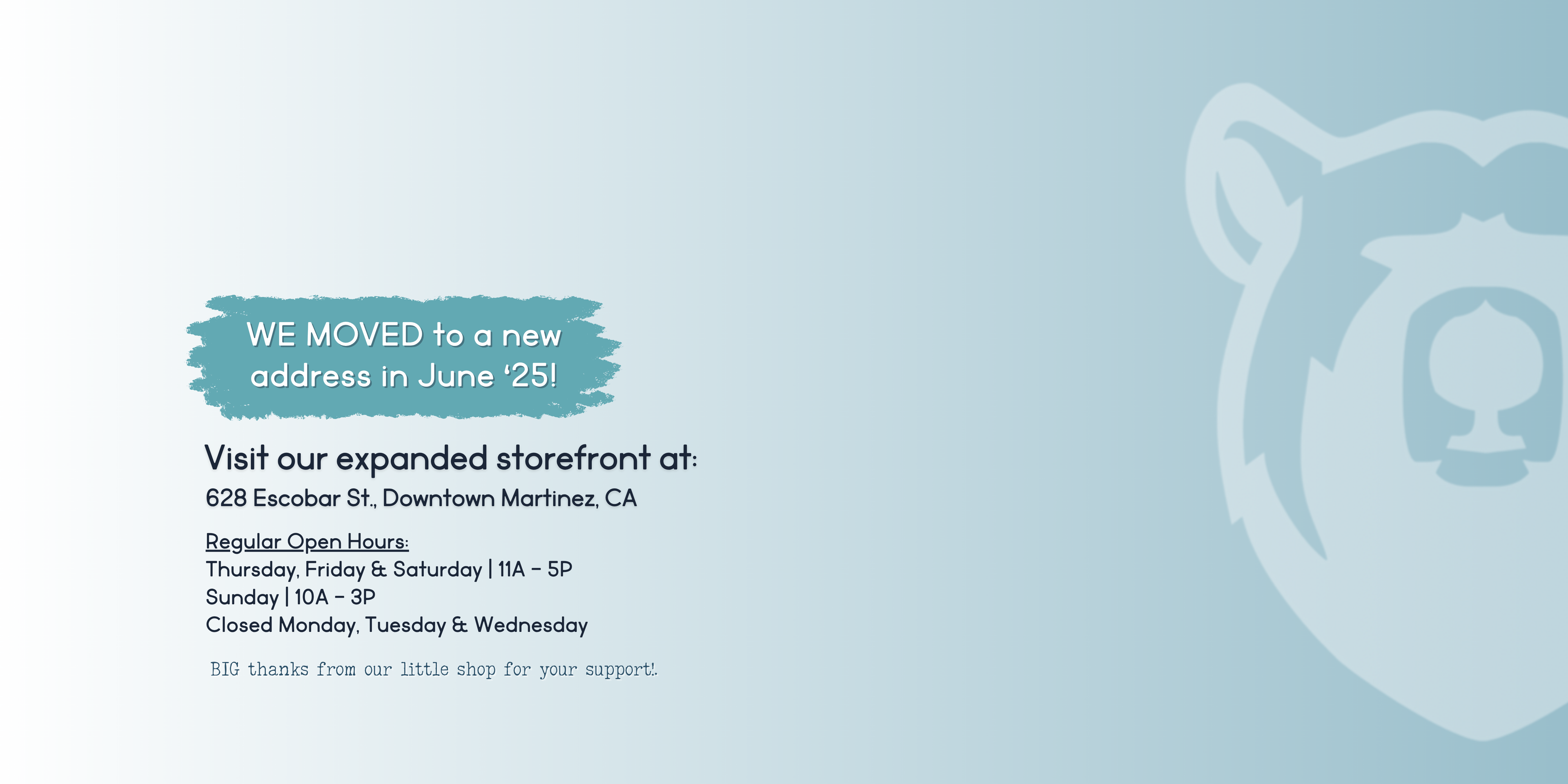 We’ve outgrown our current space on Estudillo, and we’re beyond excited to create a larger laser production area in the back and a bigger mercantile shop in the front. More space means more products and—of course—more fun!