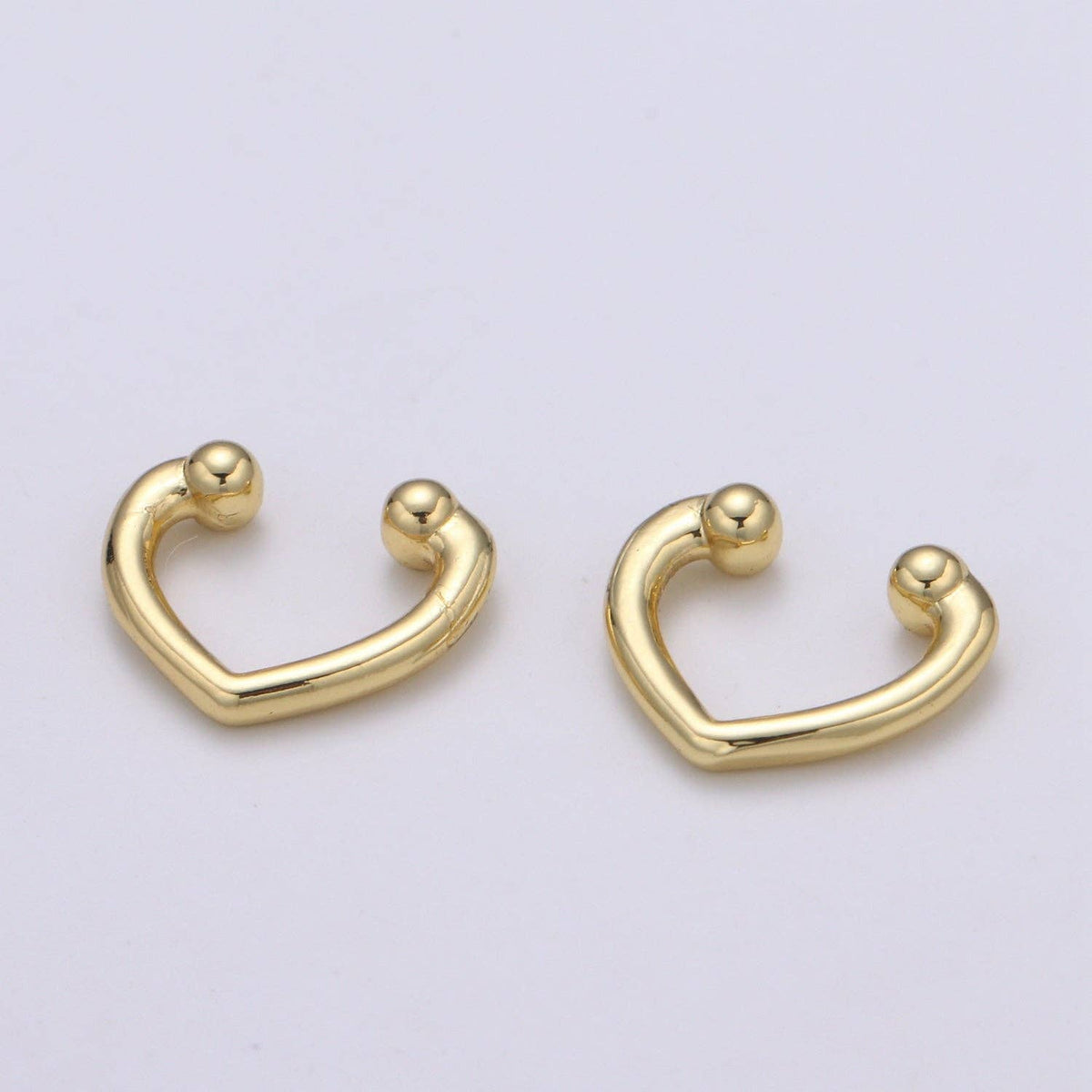 Unit price / perAdd a single charming piece to your collection with these 14K gold-filled heart ear cuffs. Measuring 15mm, they shine in a lovely gold hue without any stones. Enjoy the comfort of lead-free and nickel-free materials, perfect for sensitive ears.