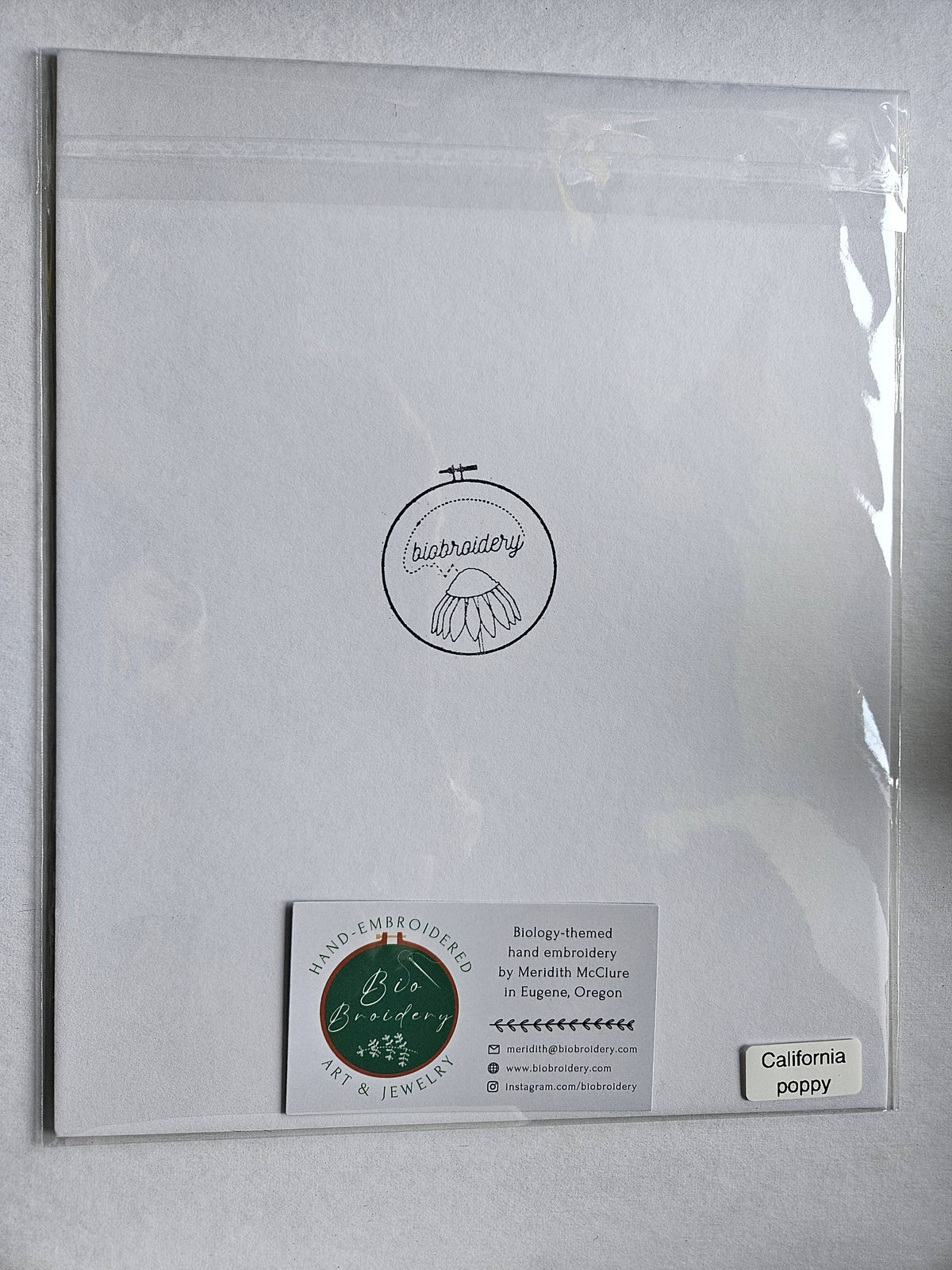 Print on archival fine art paper from original hand-embroidered, beaded, and gouache-painted original canvas piece. Dimensions including the white border are 8x10". Each print is signed by the artist. California poppy (Eschscholzia californica).