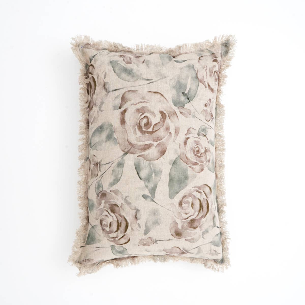 Linen Lumbar Pillow | Printed with Fringes | 16x24"