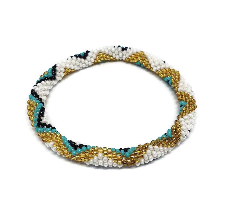 Bracelet | Teal, White with Gold and Black Mixed Colors Beads