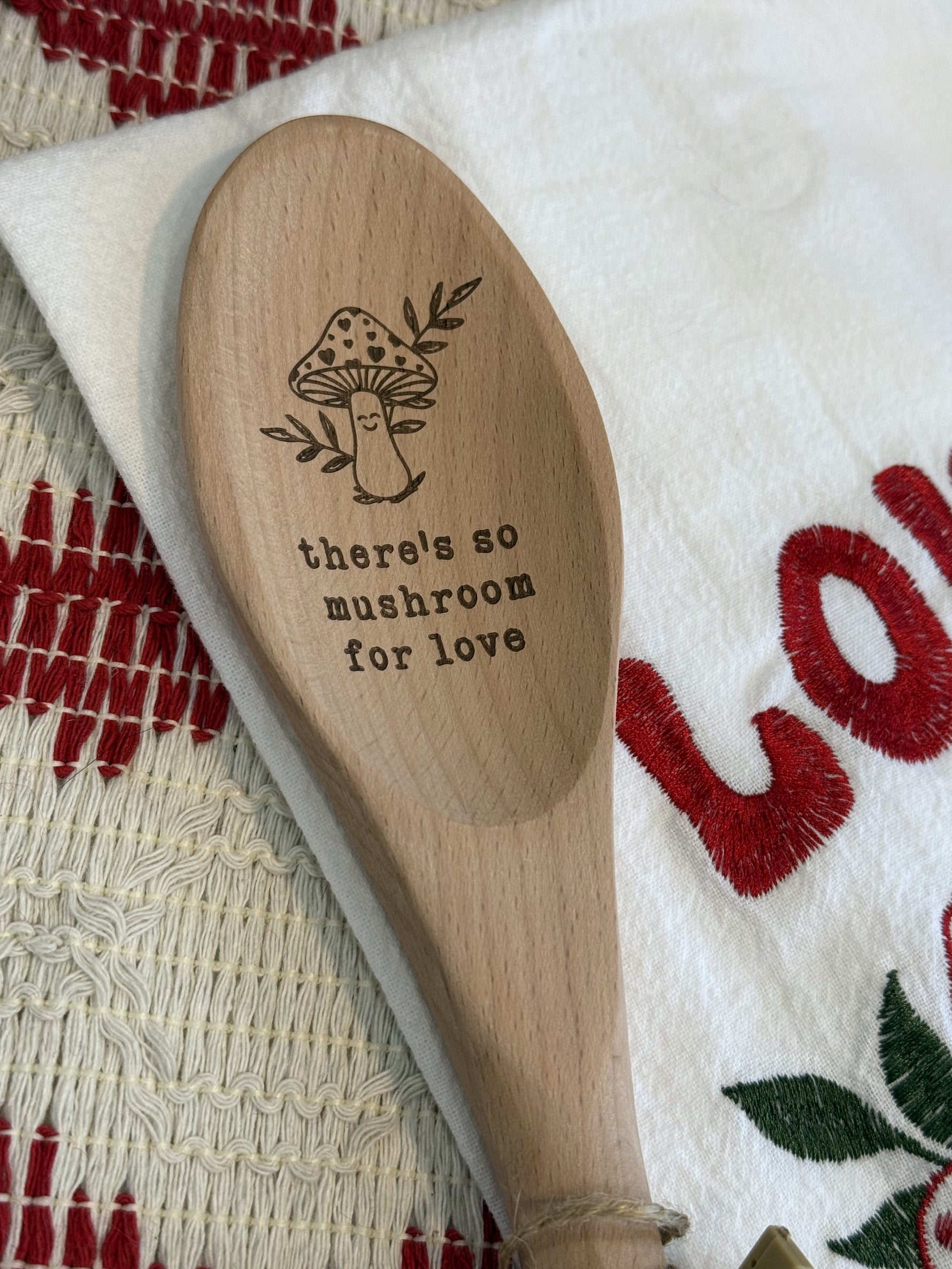 Solid beech wood kitchen spoon engraved with a fun phrase.