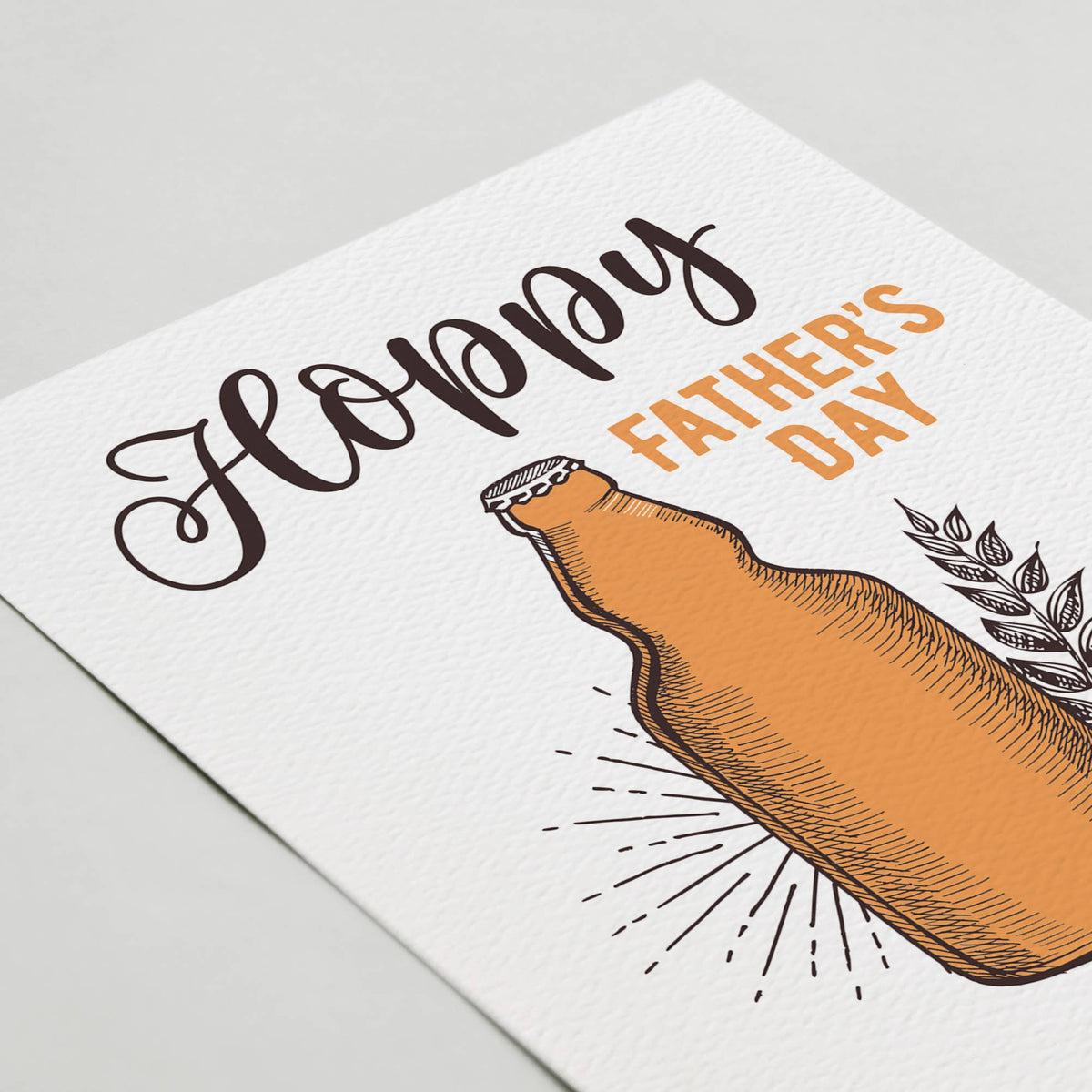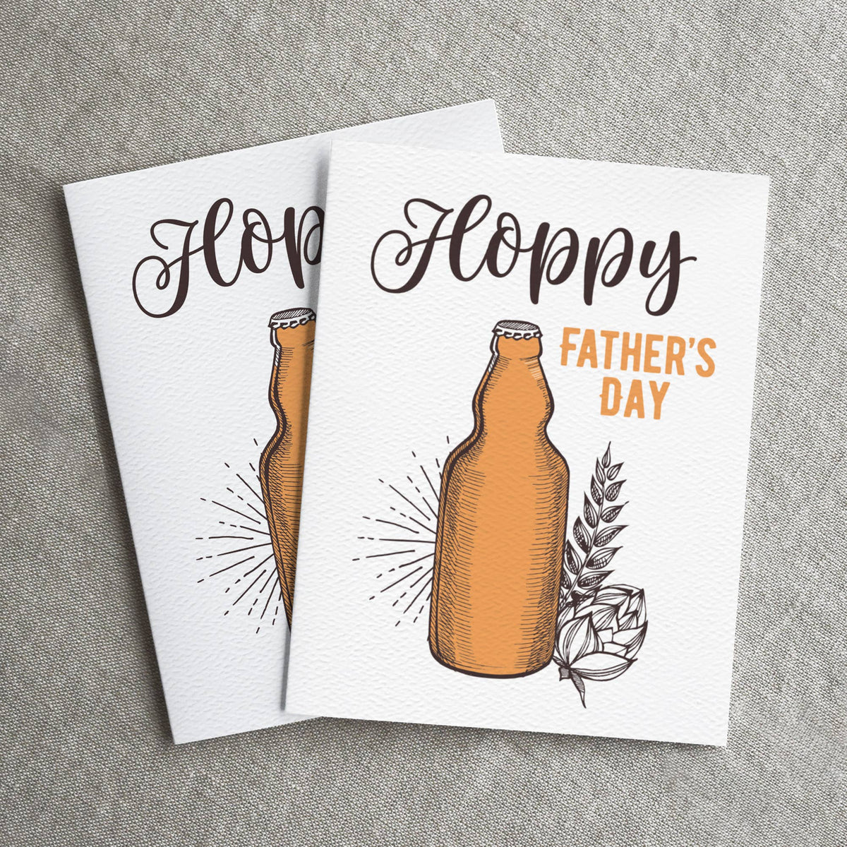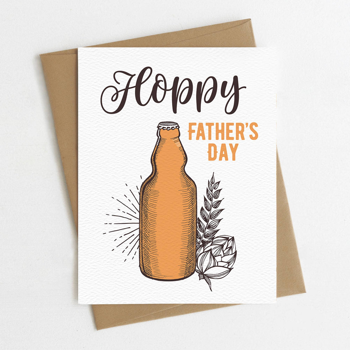 Unit price / per"Hoppy Father's Day" This Father's Day card makes an awesome gift for beer loving Dads. Card is printed on recycled paper that has a luxurious and uniquely textured feel. Perfect for breweries, eco-concious stores, and more. Greeting card size: A2 (4.25 x 5.5 inches). Includes envelopes, blank inside. Printed on FSC Certified 80 lb watercolor textured cardstock, made from recycled materials & renewable energy.Â