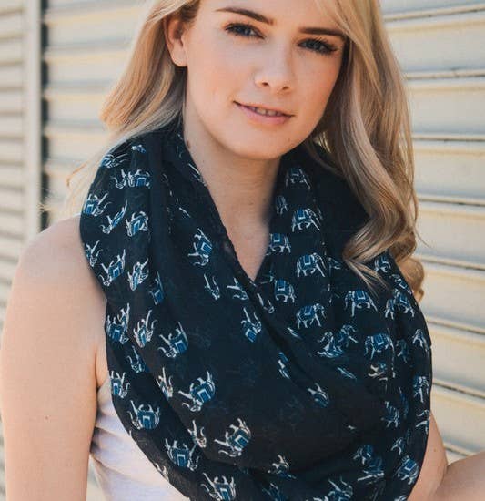 This lightweight Bohemian Elephant Print Infinity Scarf is a versatile accessory that can be looped around the neck in various styles. The scarf features a charming elephant print, adding a touch of whimsy to any outfit. The infinity design allows for endless styling possibilities, making it a go-to piece for both casual and dressy occasions.