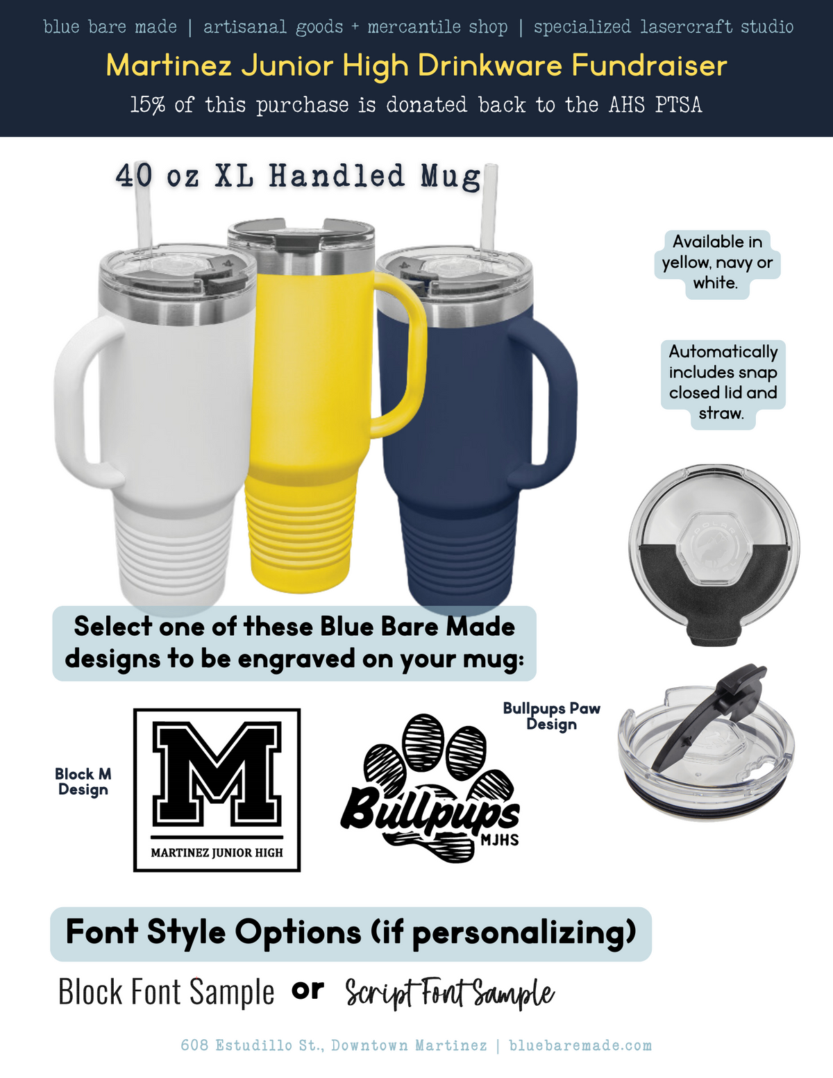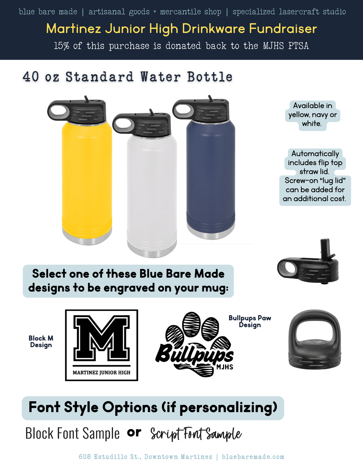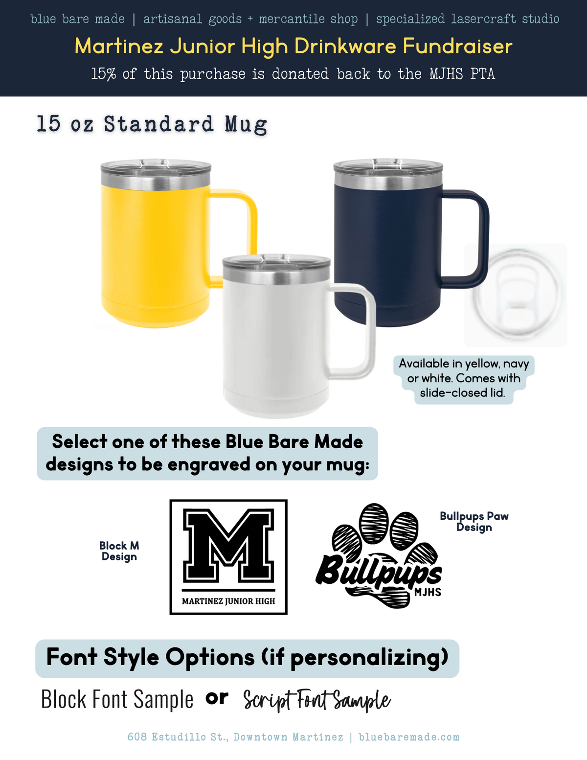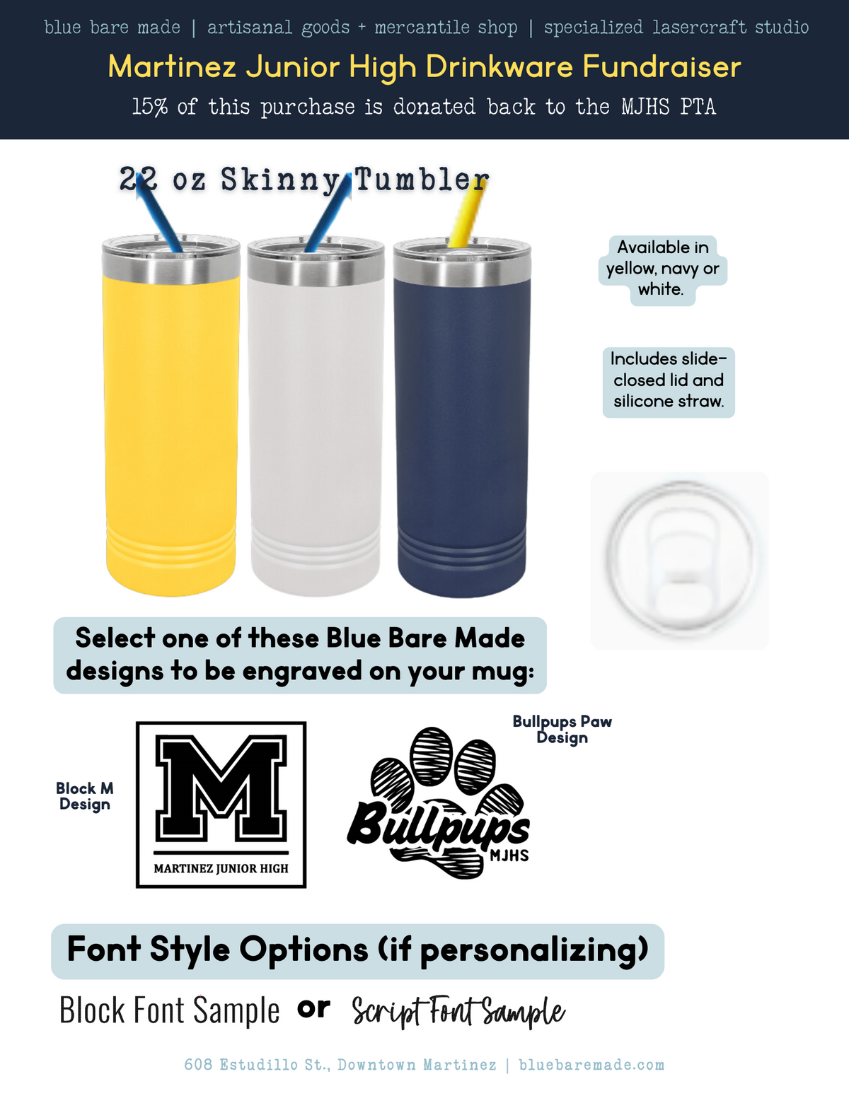 Unit price / perShow off that bullpup spirit with your custom Martinez Junior High Drinkware. 15% of your purchase of these items is donated directly back to the Martinez Junior High School PTA.