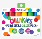When you want to paint colorful pictures but want to leave the mess behind then it's time to reach for Chunkies Paint Sticks. Chunkies are super easy to use, clean and portable because they're like painting with a crayon. Just uncap, twist and start painting. Chunkies comes in a set of 6 different colored paint sticks each in a thick barreled casing so they're easy for little hands to hold. The paint colors are quick drying and won't smudge, but it's easy to mix colors to make even more colors. It's magic! Care and use recommendations: Keep capped when not in use, to help prevent drying. Cover and protect your workspace. This product may stain some surfaces.