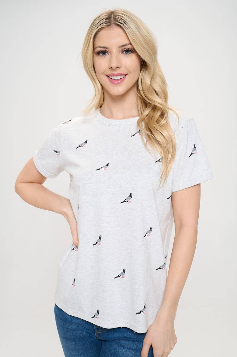 Unit price / perThis playful women's t-shirt features an all-over pigeon print that adds a fun twist to your casual wardrobe. Made from 100% soft cotton, it ensures comfort all day long. Easy to care for, just cold machine wash and tumble dry on low heat to keep it looking fresh. Perfect for those who love unique style with a cozy feel.