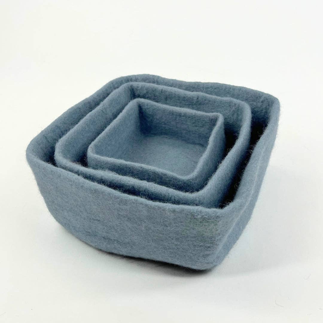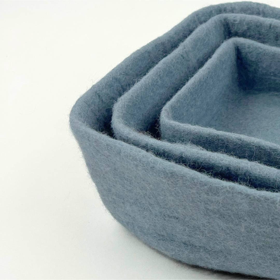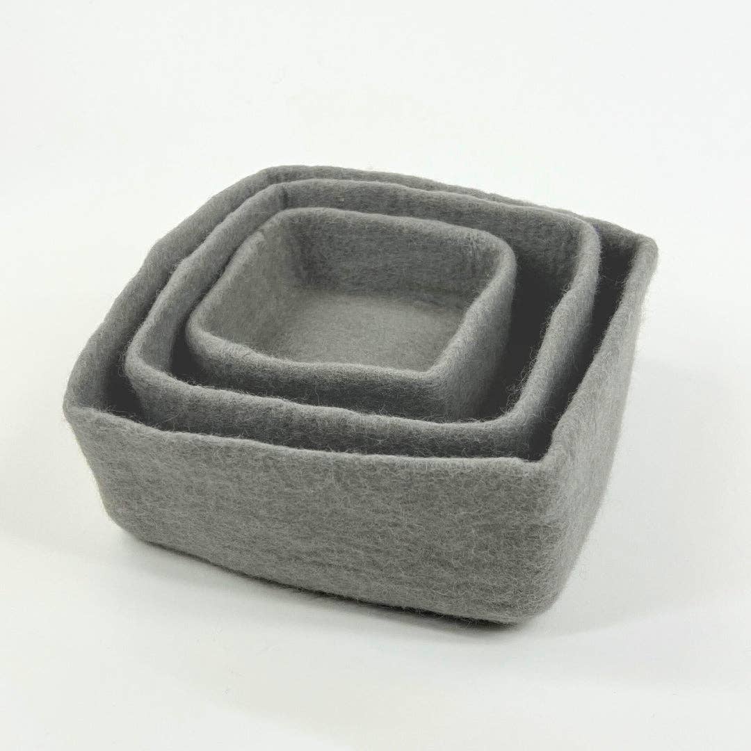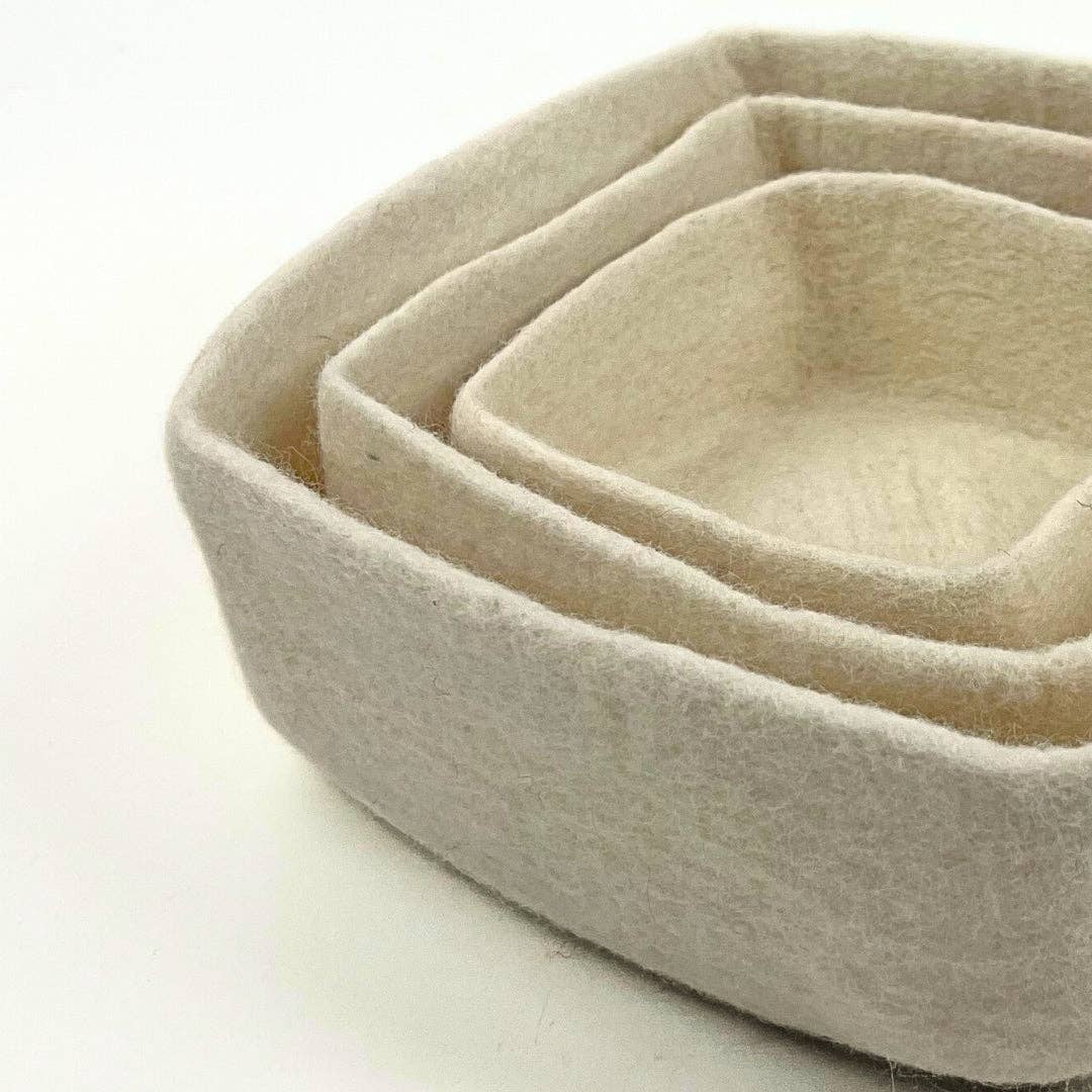 Add warmth, texture, and function to any space with the Humble Hilo Felt Bowl Set—a trio of hand-felted, square bowls made from 100% New Zealand wool. Crafted by skilled female artisans in Nepal’s Kathmandu Valley, these bowls blend thoughtful design with artisanal charm. Soft yet structured, they’re perfect for organizing keys, jewelry, snacks, or decor. Use them in the entryway, kitchen, or bedroom for effortless, beautiful organization. Each set is naturally unique, adding warmth and character to your home.