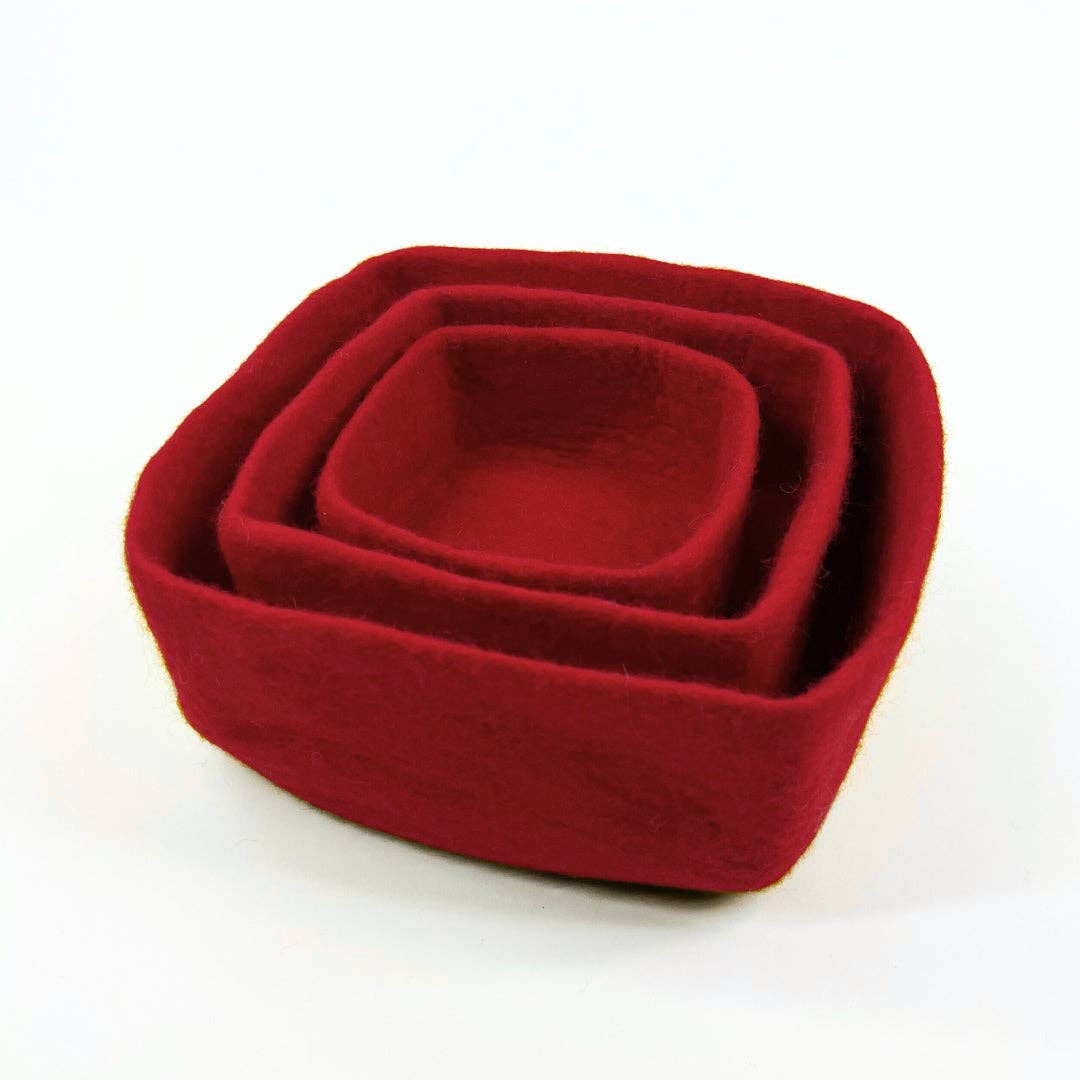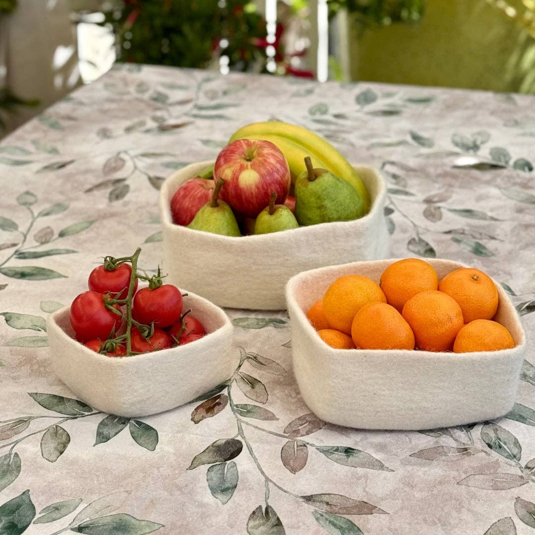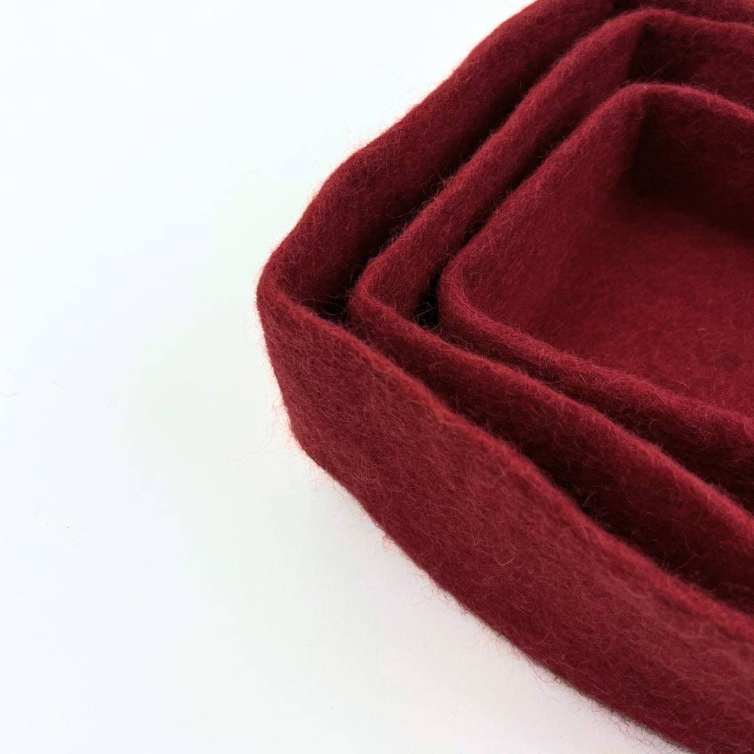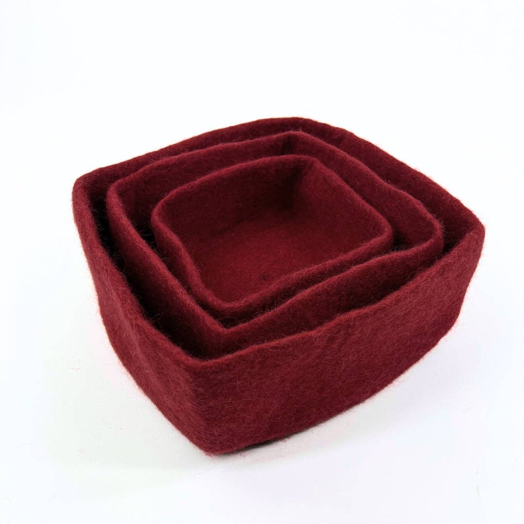 Add warmth, texture, and function to any space with the Humble Hilo Felt Bowl Set—a trio of hand-felted, square bowls made from 100% New Zealand wool. Crafted by skilled female artisans in Nepal’s Kathmandu Valley, these bowls blend thoughtful design with artisanal charm. Soft yet structured, they’re perfect for organizing keys, jewelry, snacks, or decor. Use them in the entryway, kitchen, or bedroom for effortless, beautiful organization. Each set is naturally unique, adding warmth and character to your home.
