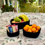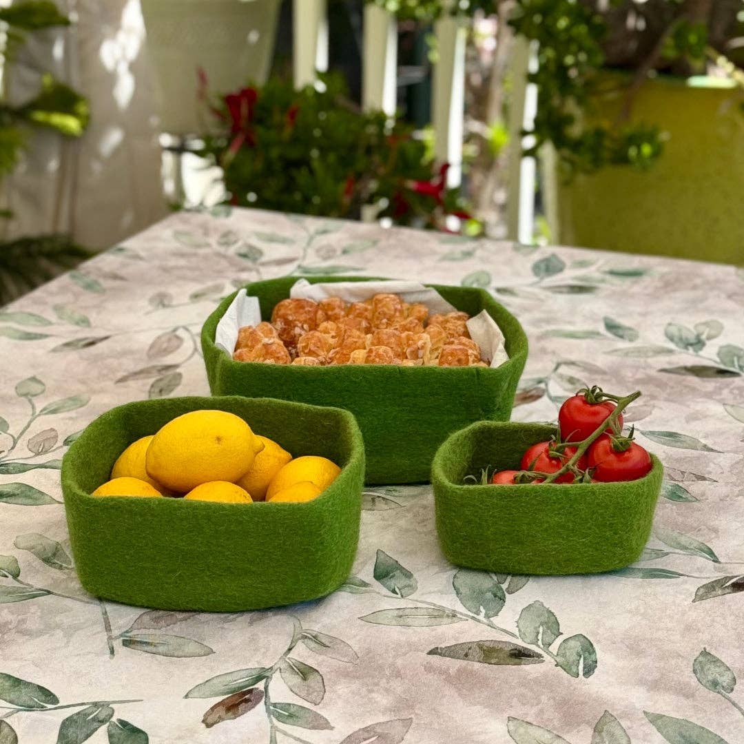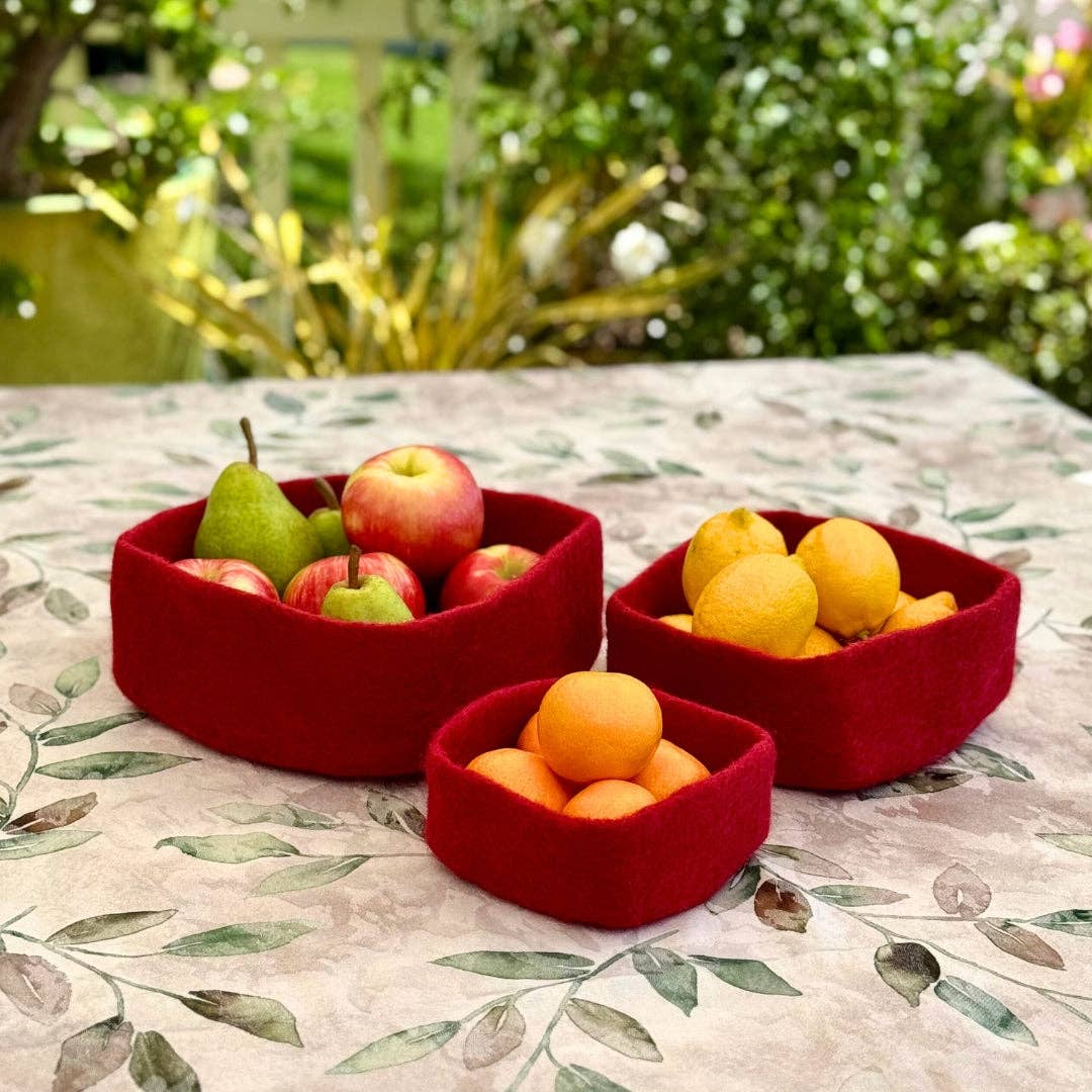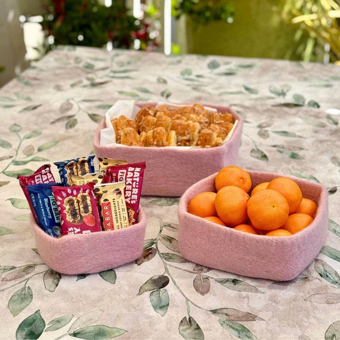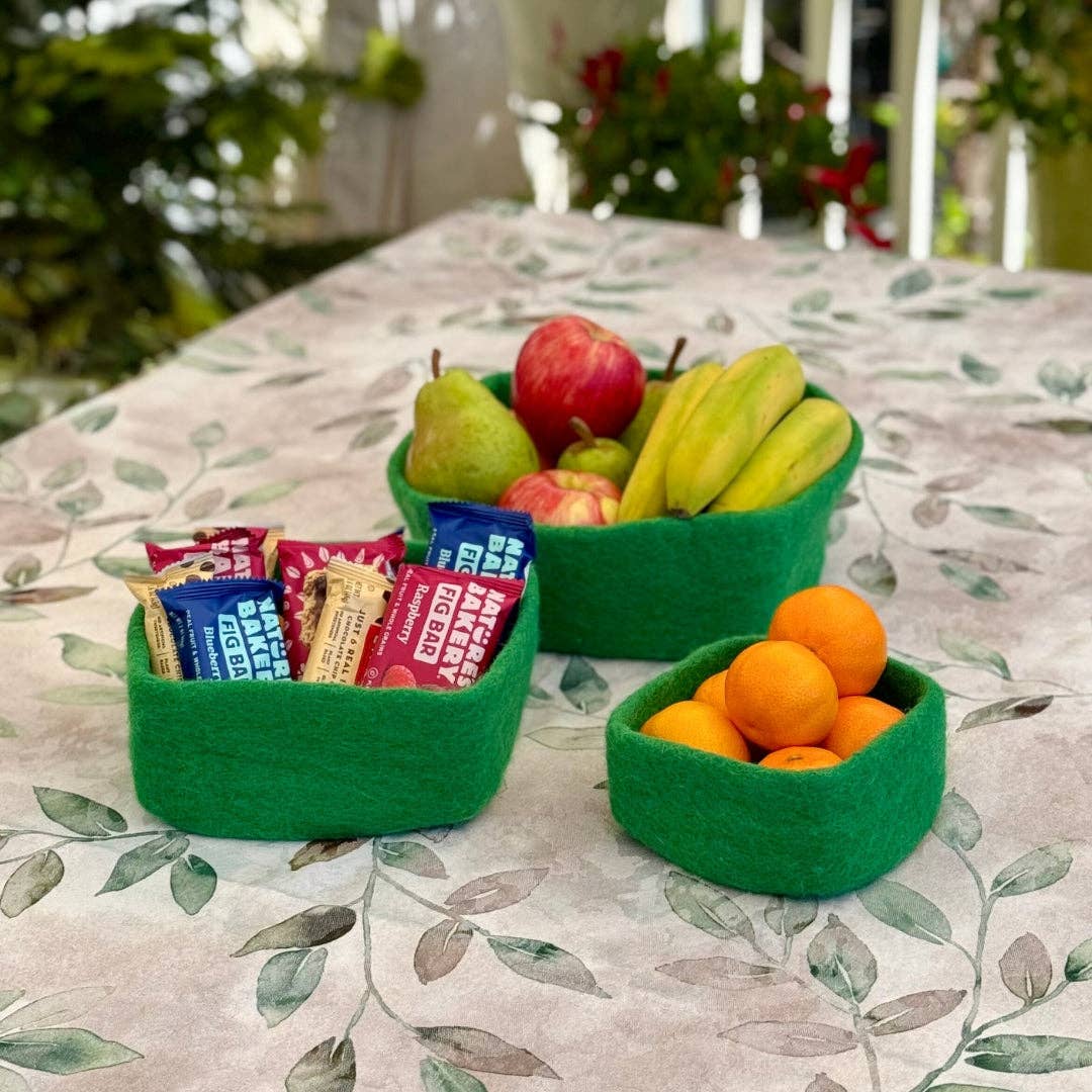 Add warmth, texture, and function to any space with the Humble Hilo Felt Bowl Set—a trio of hand-felted, square bowls made from 100% New Zealand wool. Crafted by skilled female artisans in Nepal’s Kathmandu Valley, these bowls blend thoughtful design with artisanal charm. Soft yet structured, they’re perfect for organizing keys, jewelry, snacks, or decor. Use them in the entryway, kitchen, or bedroom for effortless, beautiful organization. Each set is naturally unique, adding warmth and character to your home.