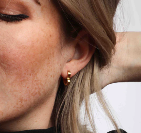 Our heart-shaped Dolly huggie hoop earrings offer a sweet, romantic touch with their dainty design and snug fit. Finished with an invisible click hoop closure that is even comfortable enough to sleep in, these huggies are perfect for everyday wear.