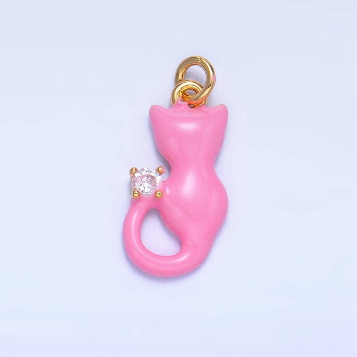 24K Gold Filled Black, White, Pink Enamel CZ Kitten Cat Pet Animal Charm | W009 - W010: White