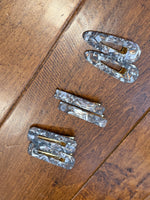 Unit price / perStyle your hair with these stunning tortoise shell acetate clips! Each 3" clip delivers a bold, distinctive look that works with any hairstyle. The lightweight design keeps them comfortable all day, while the rich tortoiseshell pattern adds instant flair to your everyday aesthetic. Perfect for anyone who loves a touch of personality in their accessories.