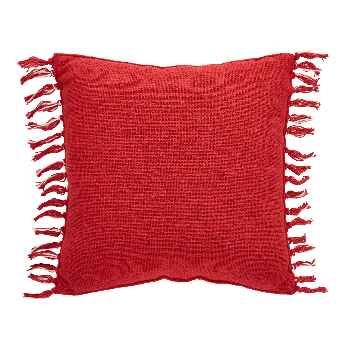 Unit price / perAdd a little pop of festive style with this Christmas accent pillow. The Gallen Red White Fringed Pillow measures 12 by 12 inches. The filled pillow features a deep red base with a simple white stitched pattern woven on the front. The cozy red accent pillow includes dramatic tasseled edging. Spot clean as needed.