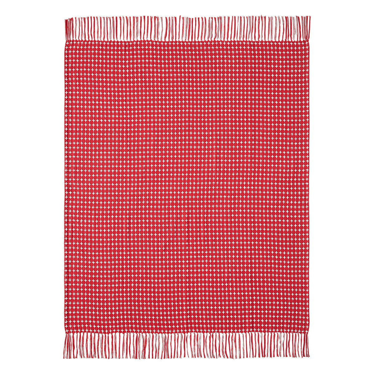 Transform your home this Christmas into a cozy winter lodge with a simple yet elegant pattern in the traditional colors of the season. The Gallen Red White Woven Throw measures 50x60 inches. The classic rustic country throw blanket features a bold red base with a soft white cross stitch pattern. Tasseled edging adds an extra pop of texture. Coordinates with the Gallen Red White Collection by VHC for holiday style for your whole home.