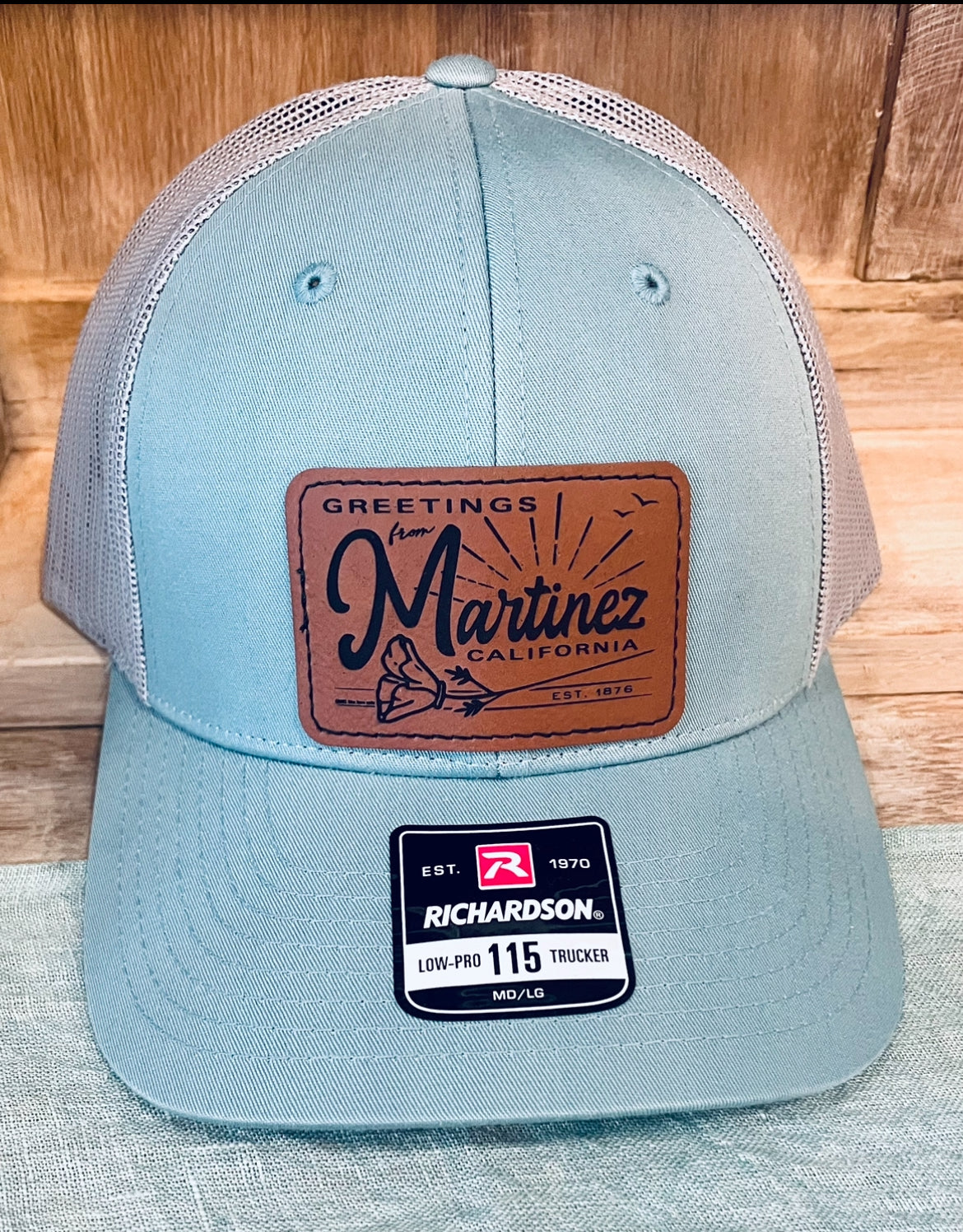 Unit price / per*Greetings From Martinez vintage postcard style design on a vegan leather patch.