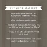 BACK: unfinished, natural birch; Lily & Sparrow stamped logo