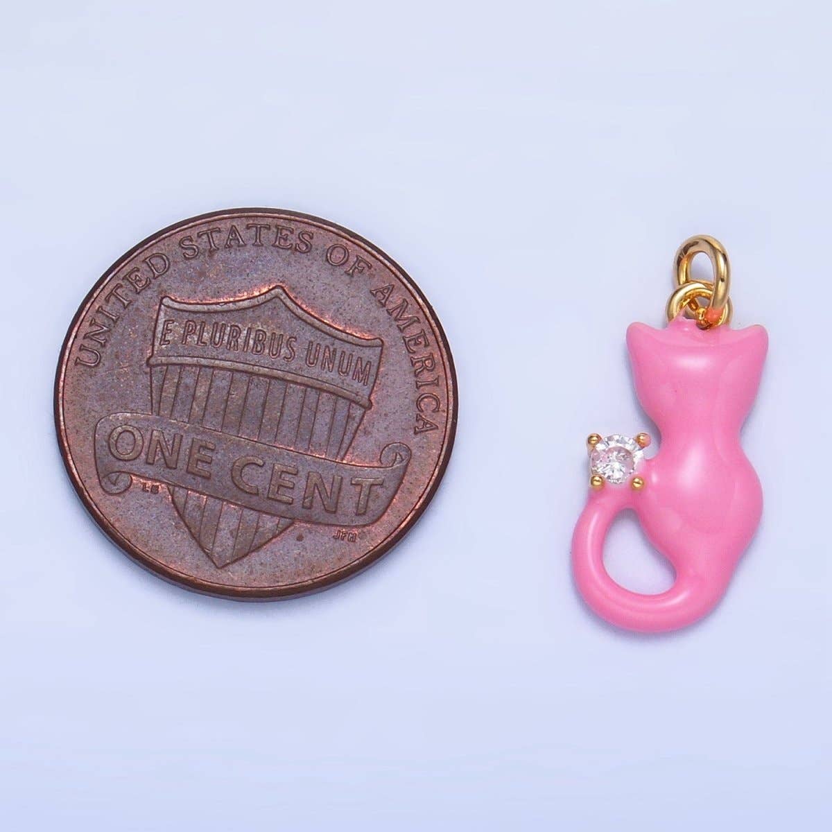 24K Gold Filled Black, White, Pink Enamel CZ Kitten Cat Pet Animal Charm | W009 - W010: Black