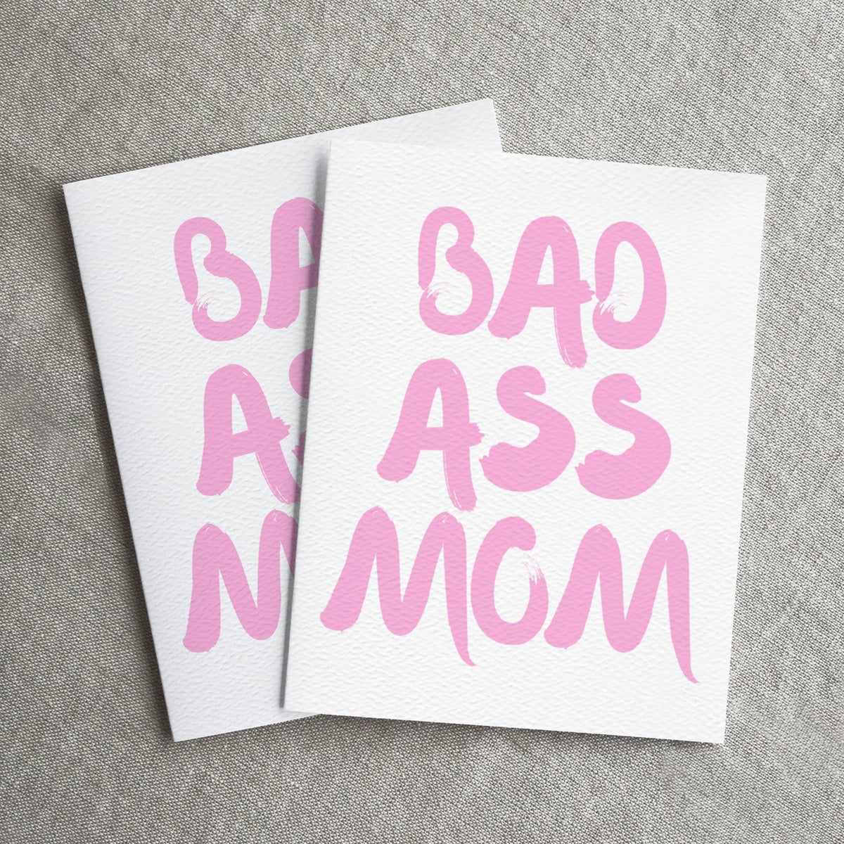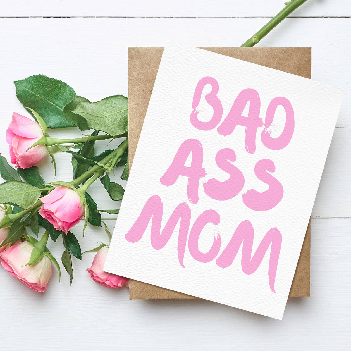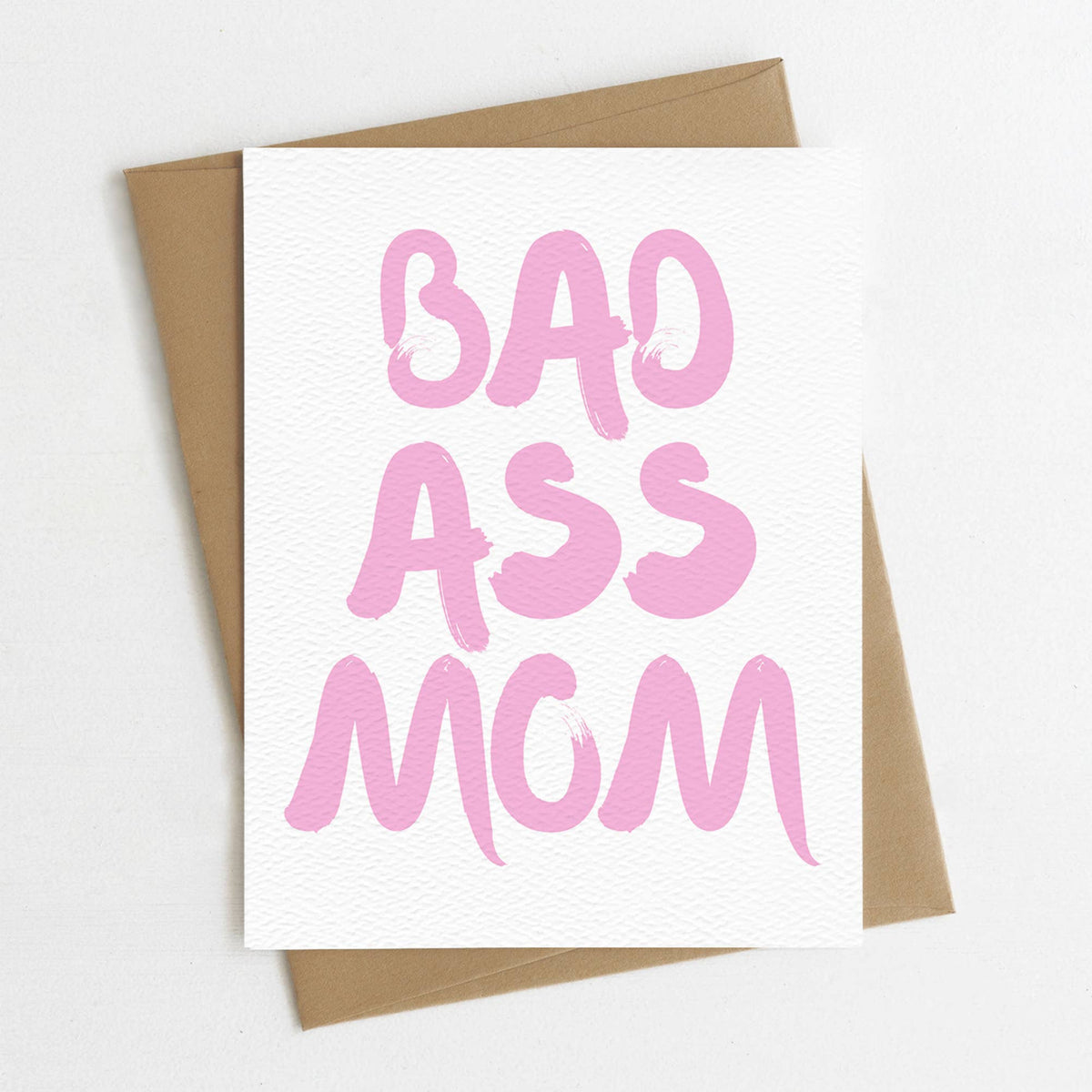 "Badass Mom" card, perfect for Mom's birthday or Mother's Day! Each handmade card is printed on recycled paper that has a luxurious and uniquely textured feel.