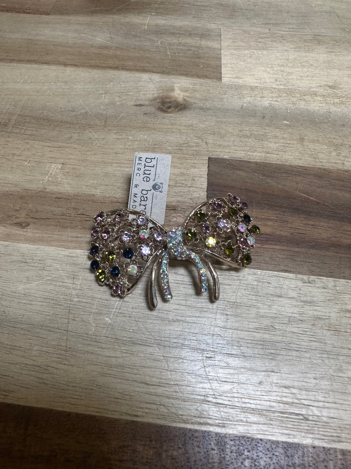 Add a playful sparkle to your outfit or bag with this uniquely made pin brooch. Each piece is carefully hand-finished and adorned with shimmering rhinestones, making it the perfect little touch to jazz up your style with a bit of fun and flair.