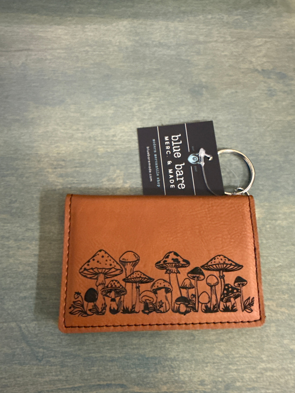 I.D. Card Holder Keychain Wallet | Mushroom Engraving