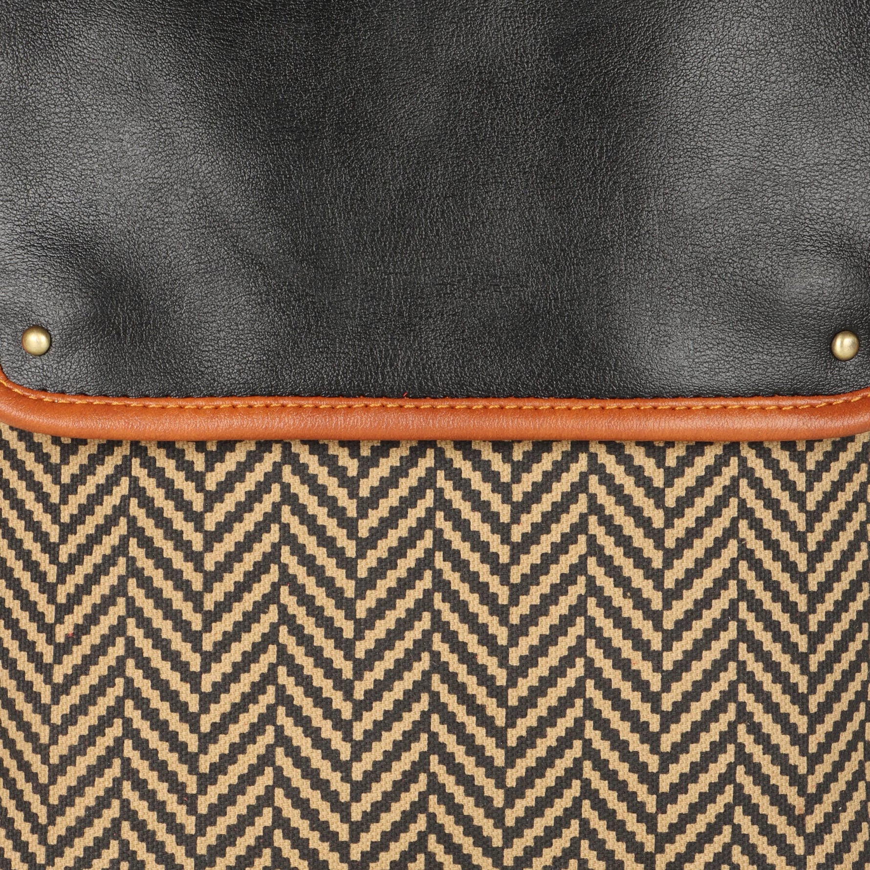 Cavalier Crossbody w/ Top Closure - Herringbone A casual favorite, the Cavalier crossbody bag is sure to become the first bag you reach for when you walk out the door. It's simple and super-chic design makes it the perfect addition to any outfit, while the spacious interior and zippered exterior pocket have room enough to hold all your everyday items! Size: 9.5"H x 9.25"W x 1.75"D Materials: Upcycled leather & recycled canvas Our zero waste bags also make great gifts for occasions such as mother's day, father's day, birthday, graduation present, anniversary, valentine's day, Christmas, holidays, wedding, special day or simply to celebrate yourself :) womens bags colorful fun exciting unique upcycled leather sustainable one of a kind gifts boutique classy mens bags simple herringbone classy exciting adventurous upcycled leather sustainable one of a kind gifts