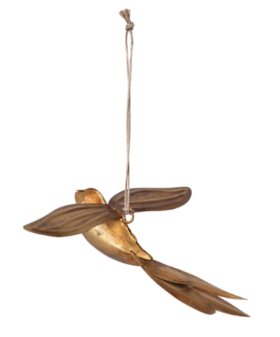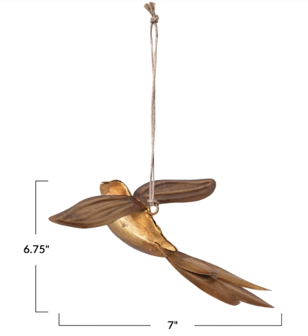 Unit price / perThis elegant metal bird ornament adds a touch of timeless sophistication to holiday décor or year-round home accents. Featuring a beautiful antique gold finish, this ornament exudes vintage charm and complements a variety of decorating styles. Made from sturdy metal for long-lasting beauty, it's ideal for hanging on Christmas trees, wreaths, mantels, or anywhere a touch of elegance is desired. Measuring 7 inches long by 6.75 inches high, this delightful ornament is a versatile addition to any holiday or everyday decoration. This is a perfect choice for anyone who loves graceful and elegant home decor. An elegant long metal bird ornament with a beautiful antique gold finish for a touch of timeless sophistication. Adds a touch of vintage charm to any holiday décor or year-round home accents. Ideal for hanging on Christmas trees, wreaths, mantels, or anywhere a touch of elegance is desired.