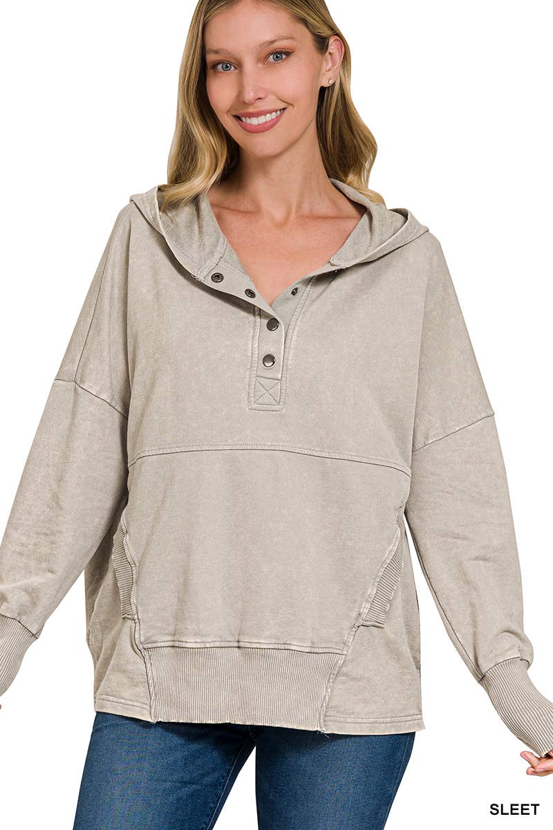 Acid Washed Hoodie | French Terry Acid Wash Kangaroo Pocket