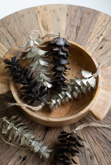 Unit price / perLooking for a classy gift? Check out these pine cone ornaments in an antique brown. Mix and match this set of four with the silver set for teachers' or class gifts. They also serve as year-round decor in a bowl.