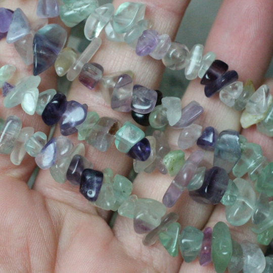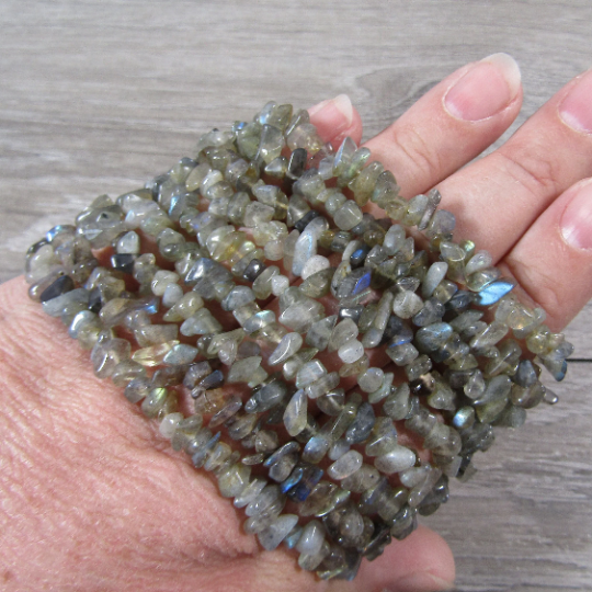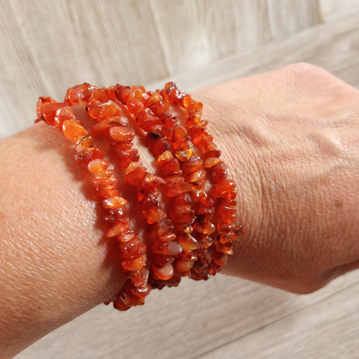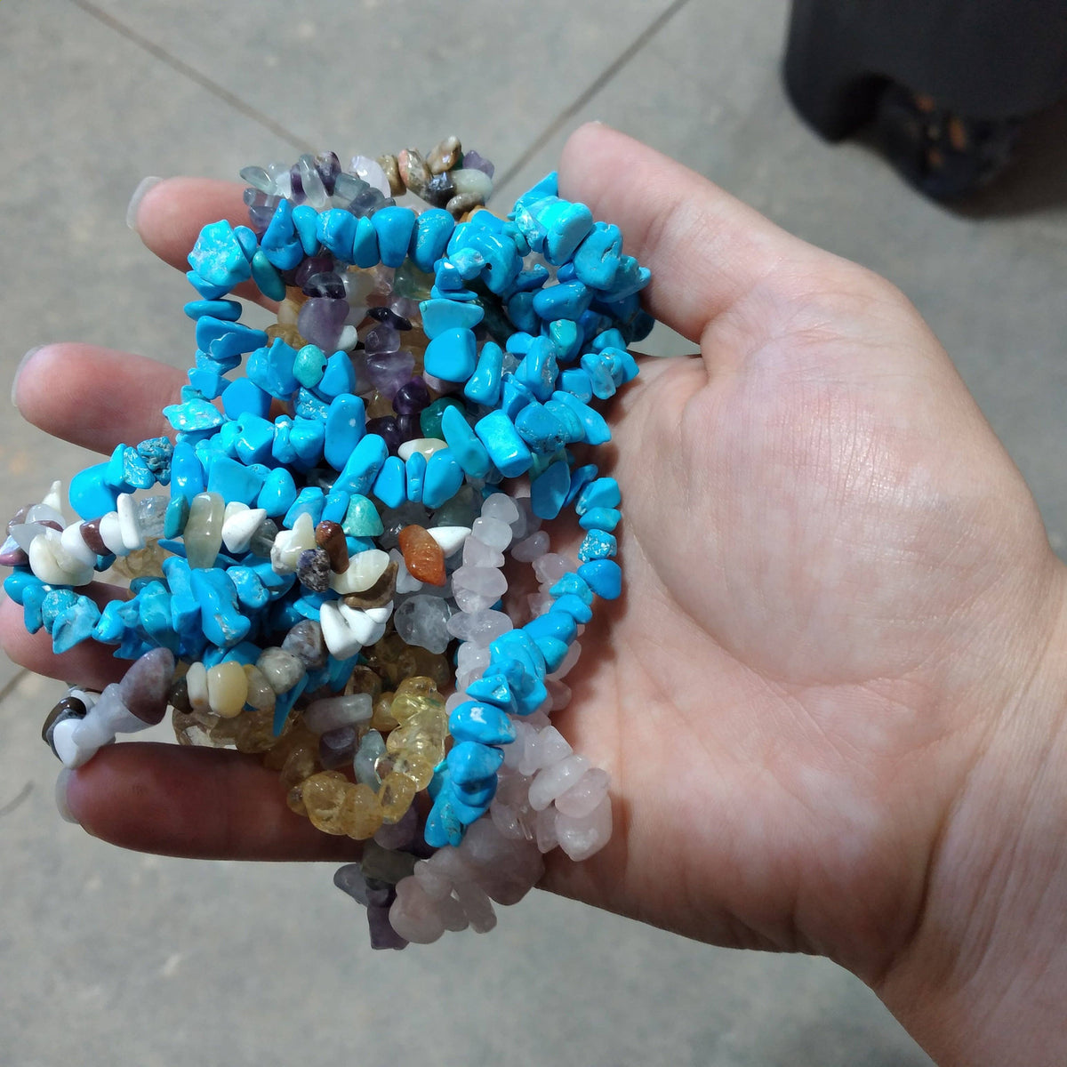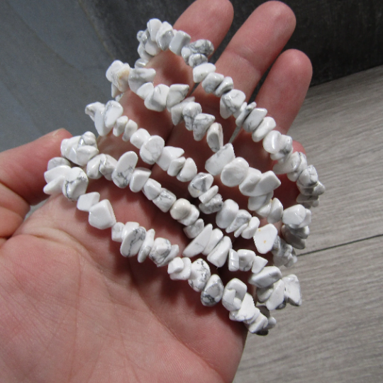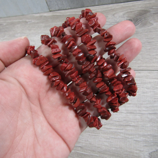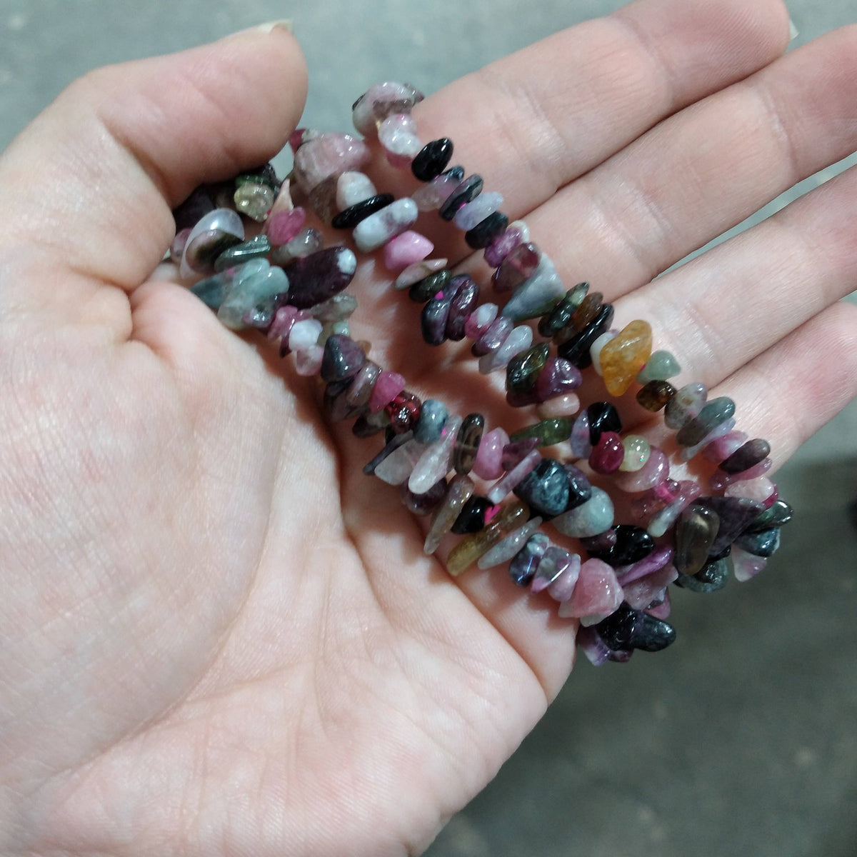Unit price / perGemstone chip bracelets featuring a variety of popular common stones like amethyst, rose quartz, clear quartz, sodalite, and aventurine. Each bracelet is crafted with polished crystal chips on a stretch cord.