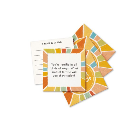 Inside this sincere set are 30 messages to encourage a little one’s individuality and self-worth. Each card features empowering sentiments such as: