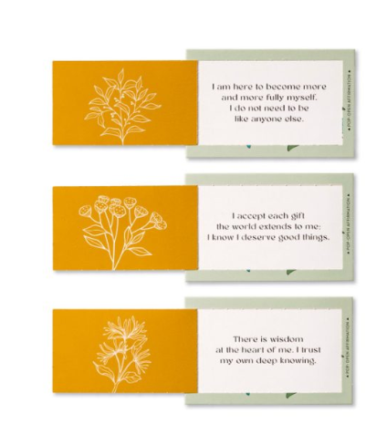Set the box on a nightstand to start the day with motivational affirmations, add them to a vision board or journal, or keep them on a desk so you can reach for inspiration at the right moment.