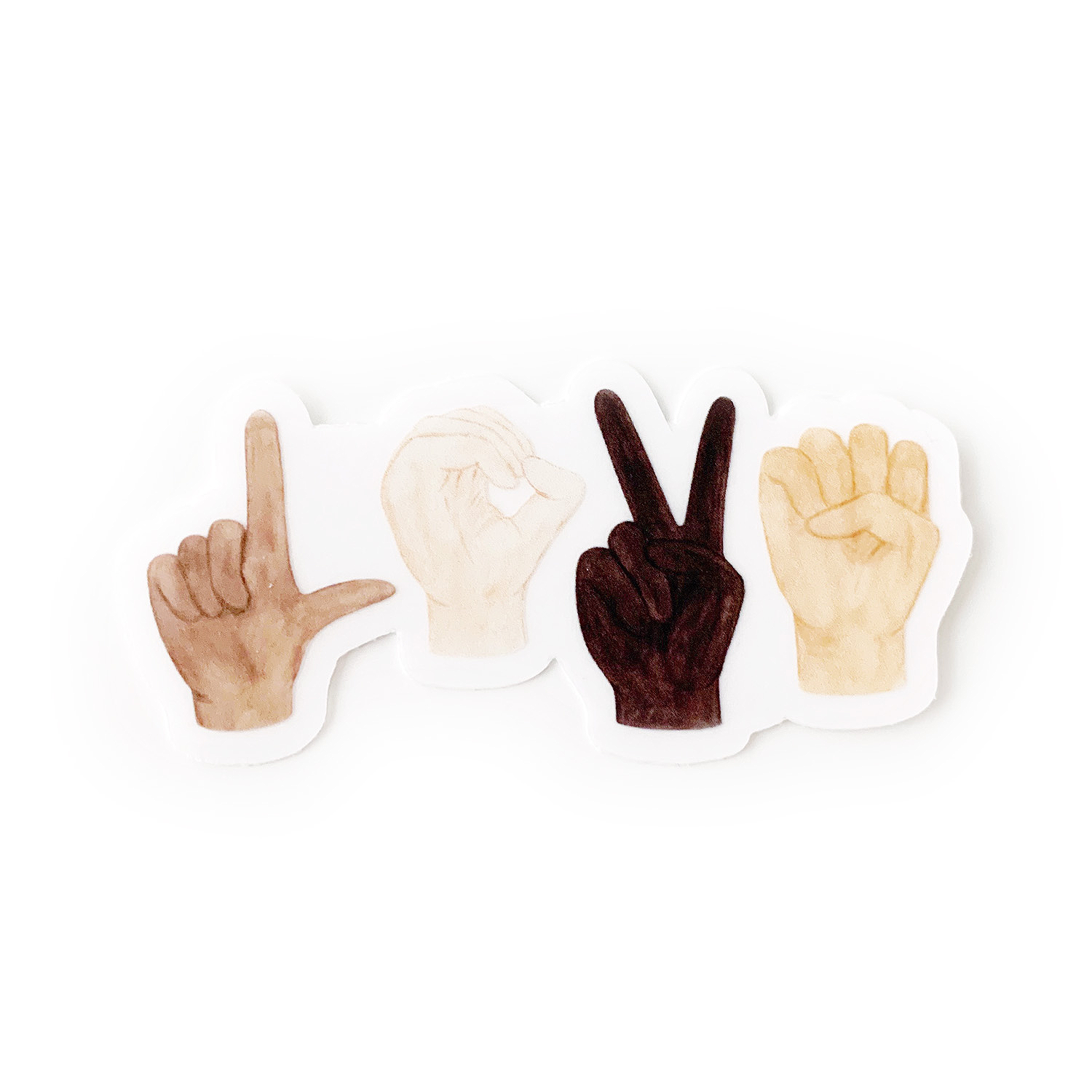 This vinyl sticker features a simple, meaningful watercolor illustration of hands spelling out "Love." Great for: gifts under $5, the socially conscious, inclusivity, diversity, LGBTQ+ ally, pride month