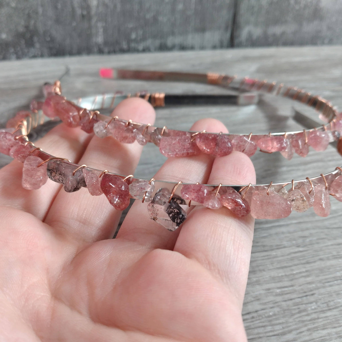 Unit price / perHandcrafted gemstone headbands, designed for comfort and style. Each headband features genuine polished gemstones arranged in a durable, flexible setting. Perfect for everyday wear or special occasions.