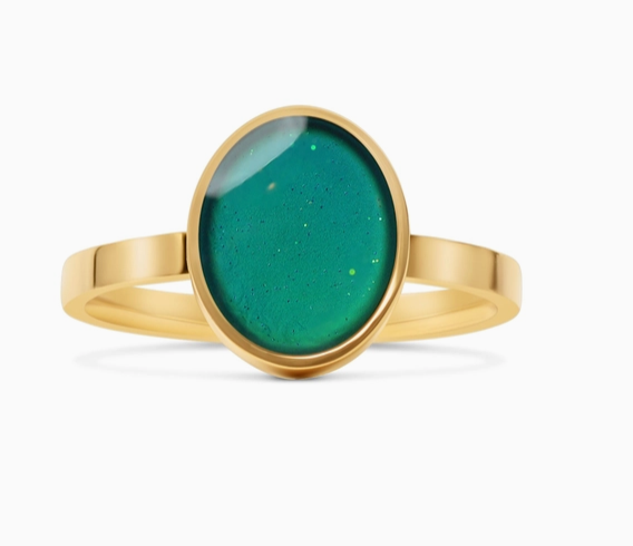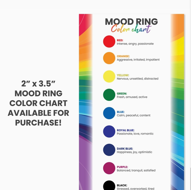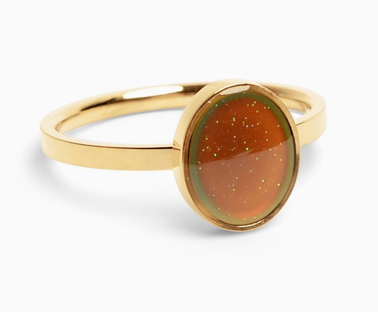 18k Gold PVD Coated Stainless Steel Mood Ring! This amazing piece of jewelry is not only stylish, but also changes through various colors to reflect your mood. Whether you're feeling happy, sad, or even angry, this ring will let you know, but don't forget to add our mood color chart card to your order so you can easily tell which emotion is showing. 18K Gold rings over surgical grade 316L stainless steel for a non-tarnish, hypoallergenic finish that will hold up best to everyday wear.