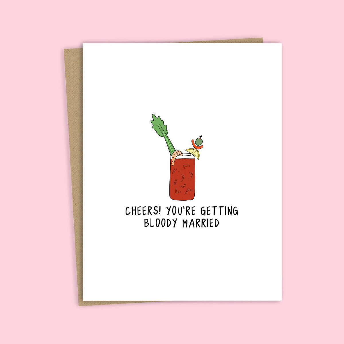 “Cheers! You're Getting Bloody Married” | Bridal Shower Card > Includes Natural Envelope > Blank Inside > A2 Card on 100# Cardstock PREMIUM QUALITY - 4.25" x 5.5" cards are made with thick 100# eggshell cardstock! These cards are sure to end up on fridges or displayed on desks because they are so cute and high quality! BLANK INSIDE FOR PERSONAL MESSAGE - These cards are extra versatile because they’re blank inside. The inside is also uncoated, making it easy to write in with any pen! DELIGHT LOVED ONES WITH UNIQUE CARDS - Whether your recipients are young or old, adults or kids, everyone loves these funny cards with playful puns. You’re sure to brighten their day and make them smile!