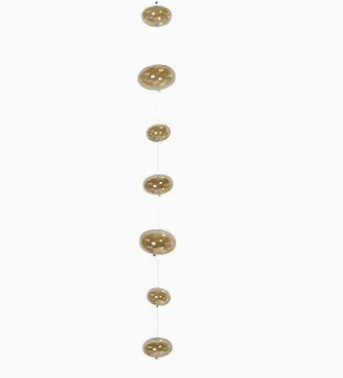 Add a touch of whimsy to your space with our Hanging Garland featuring hand-blown bubble glass balls. Each delicate strand glimmers like a string of freshly blown bubbles, capturing the magic of an ice-filled holiday celebration in warm amber tones. Perfect for brightening windows, mantels, or party decor, these light and airy ornaments bring playful sparkle wherever they hang. Measuring 28 inches long and weighing just over 1.5 ounces, this garland is easy to drape and delight with its subtle charm and festive glow.