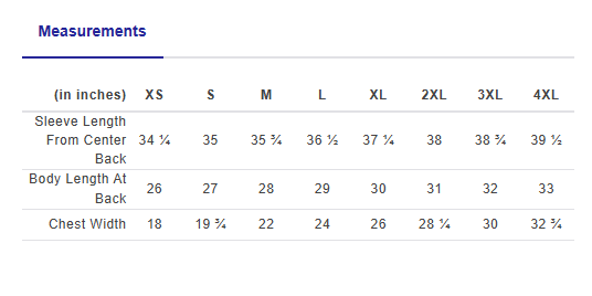 It's available in sizes XS-4XL Click through the product images above for more specific info on shirt measurements.