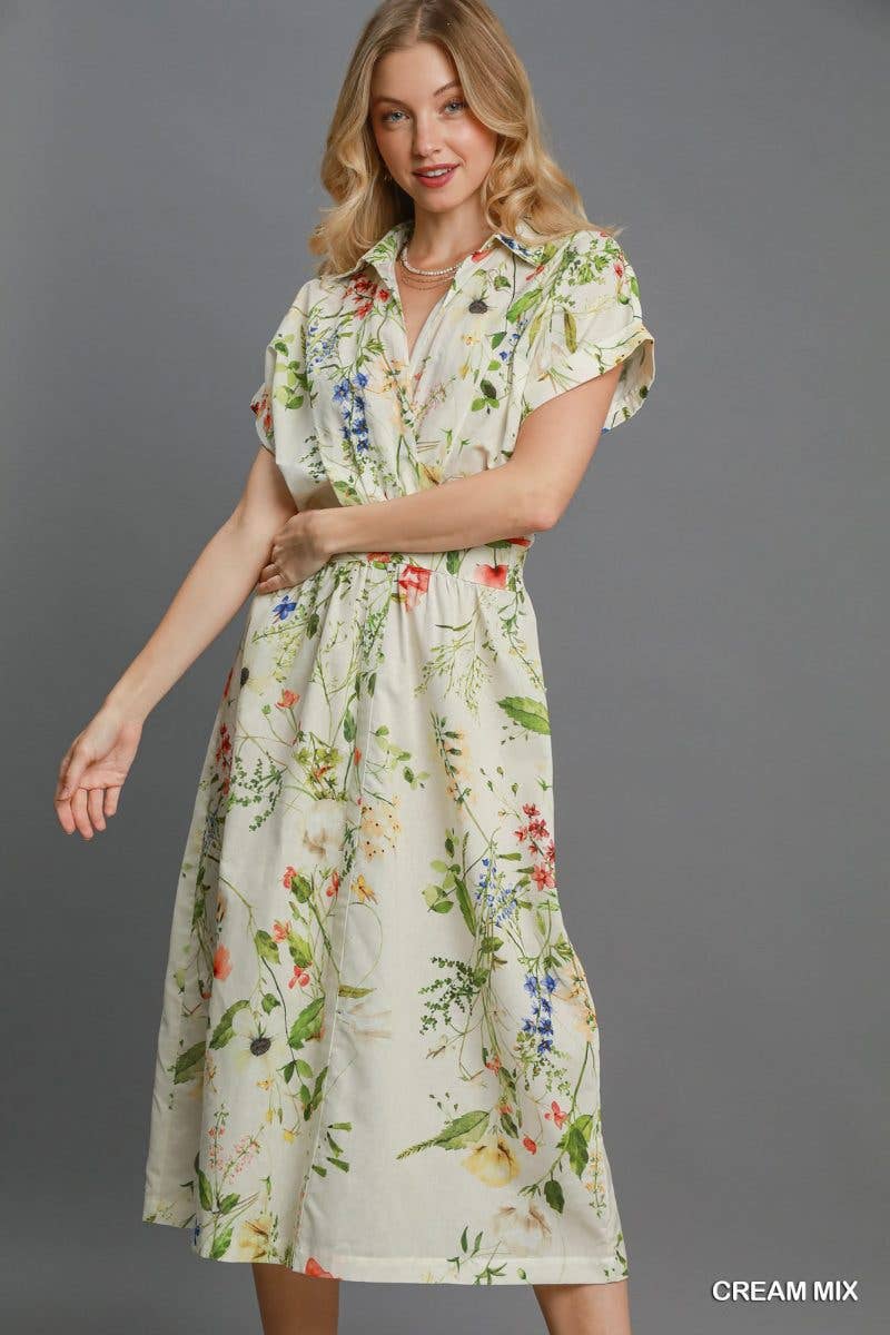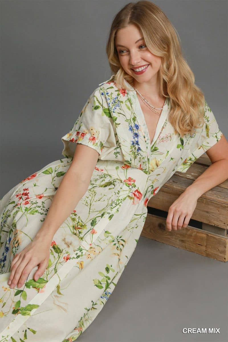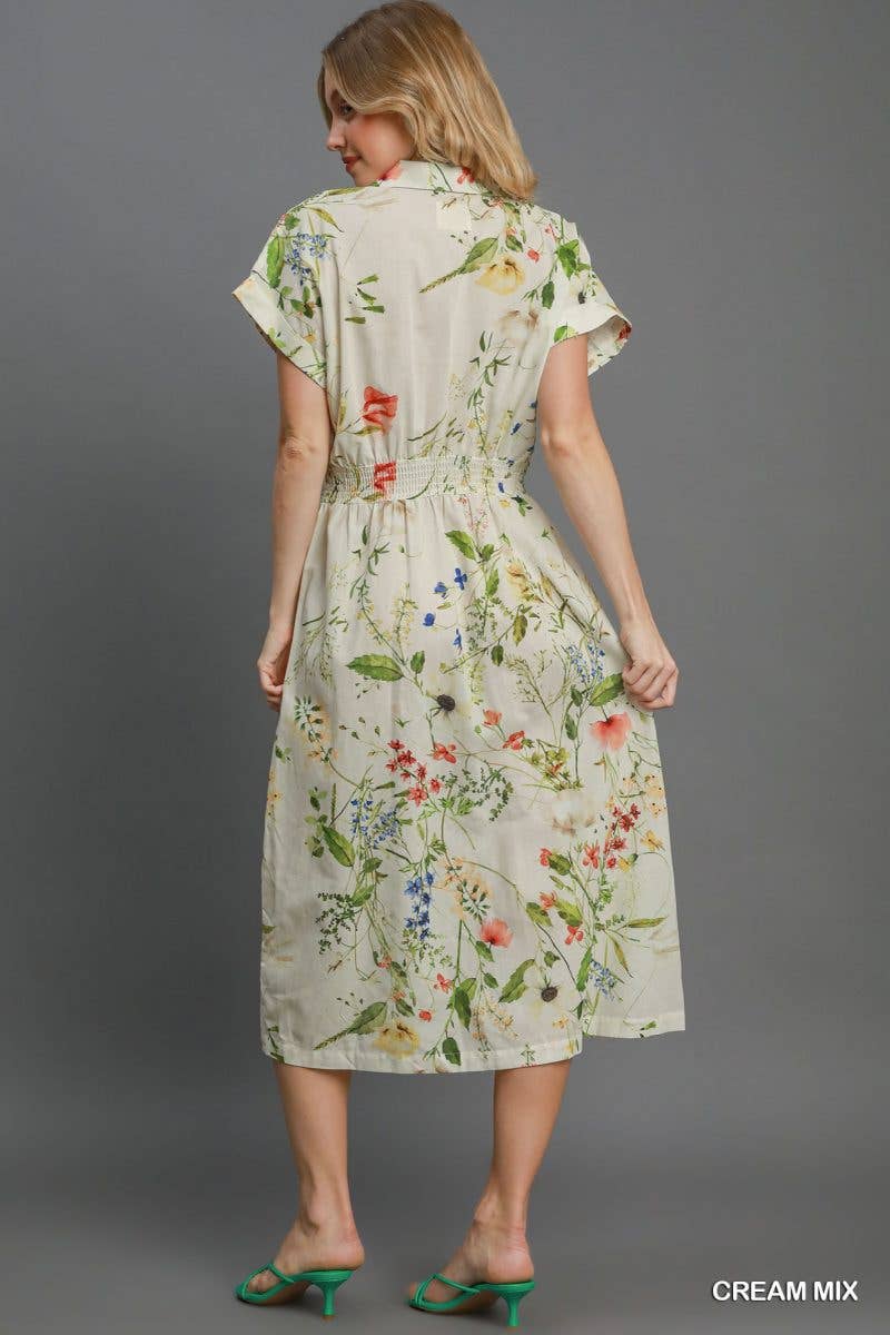 Midi Floral Print Dress | Spring Button Down