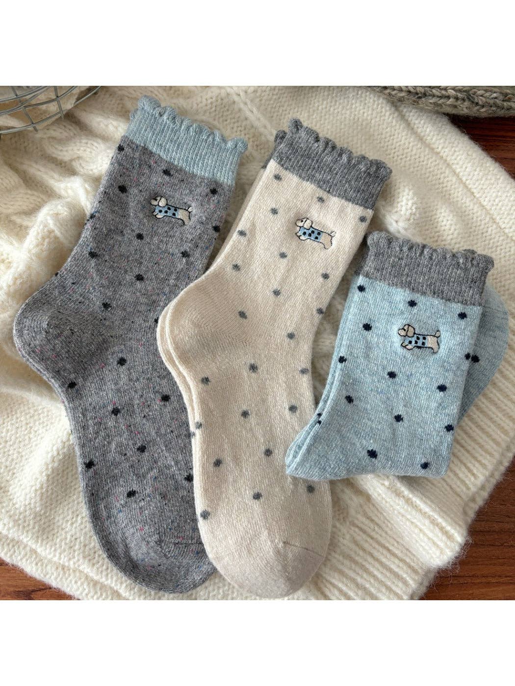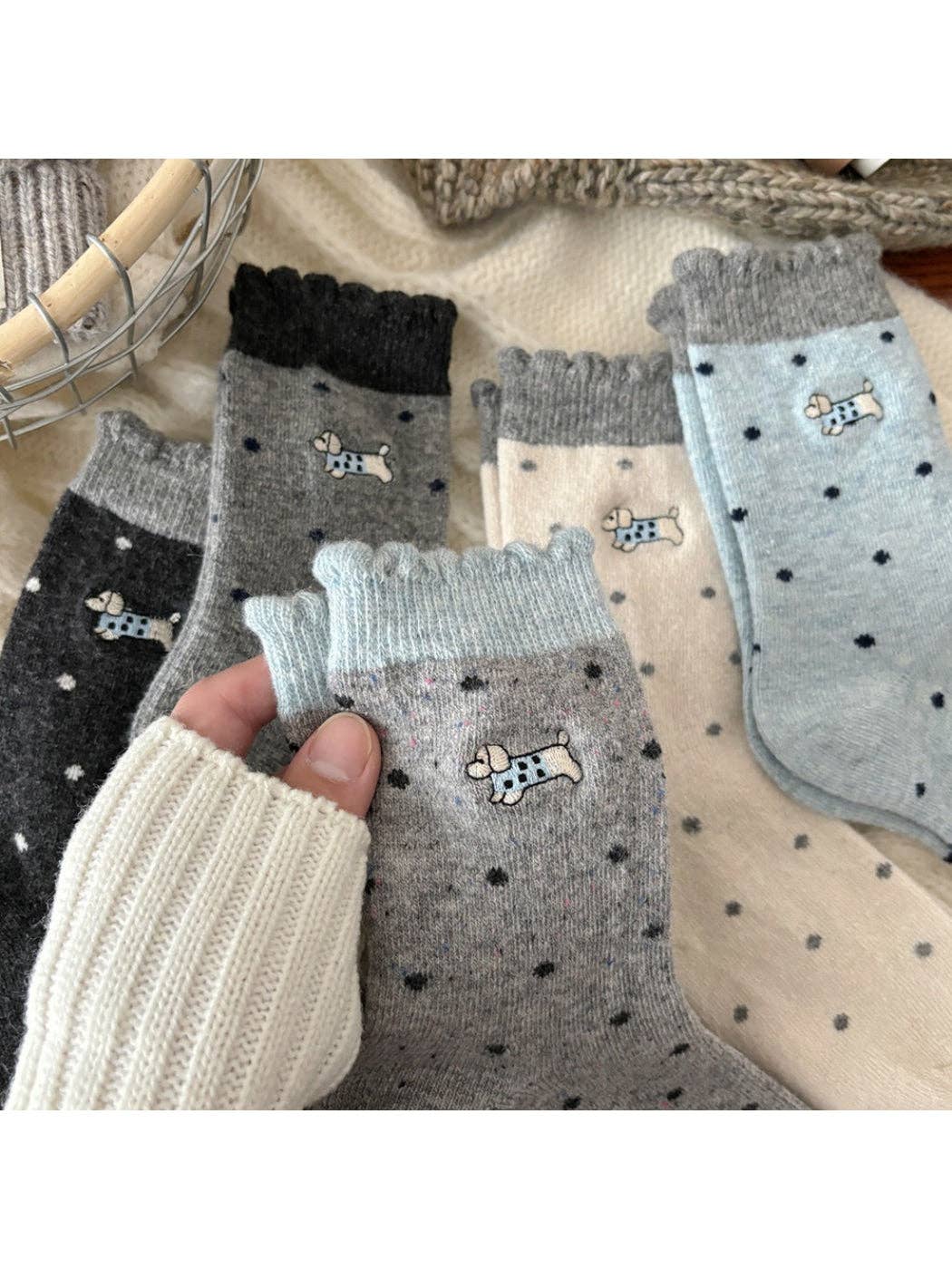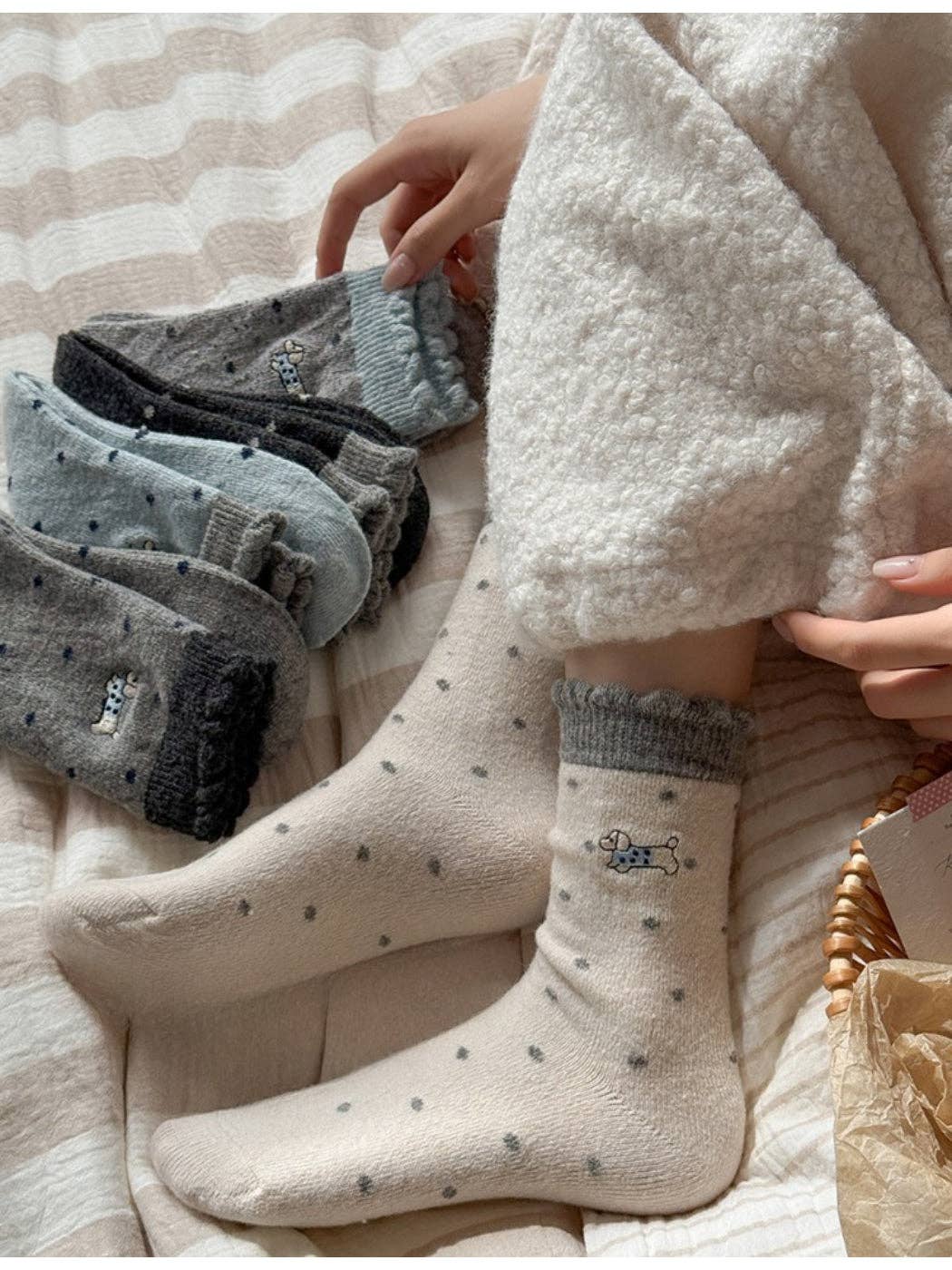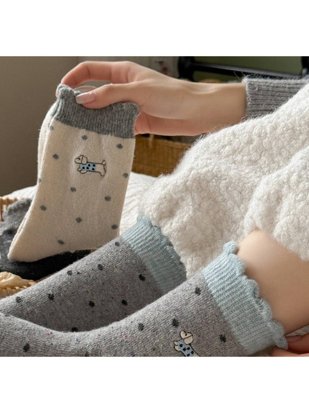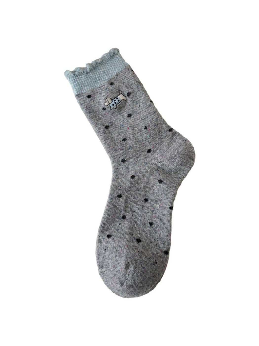 Unit price / perAdorable crew socks featuring an embroidered dachshund puppy design with charming dot details. Made from breathable, durable polyester (50g per pair), these lightweight socks keep feet cozy through autumn and winter. One-size fit stretches to accommodate most feet comfortably. Perfect for dog lovers and anyone who loves a touch of playful charm. Hand wash gently and lay flat to preserve the cute embroidery.