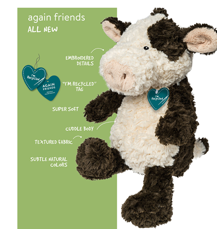 Unit price / perIntroducing Again Friends, Mary Meyer’s new line of recycled plush toys that are not only cute and cuddly but also SUSTAINABLE. Each character in our collection is made with fabrics from RECYCLED PLASTICS, making it a perfect choice for those who care about sustainability. From our lovable lamb to our adorable elephant, each Again Friend is a unique design that your little ones will love. With their soft and huggable texture, these toys are perfect for snuggling at bedtime or taking along on an adventure. Again Friends give your child a toy that’s not only fun but better for the planet!