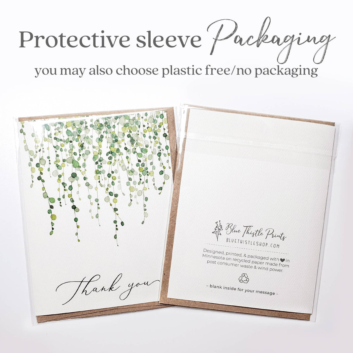 Unit price / perSay thanks with this cute and cheery thank you card! Each handmade card is printed on recycled paper that has a luxurious and uniquely textured feel. Greeting card size: A2 (4.25 x 5.5 inches). Includes envelopes, blank inside. Printed on FSC Certified 80 lb watercolor textured cardstock, made from recycled materials & renewable energy.Â