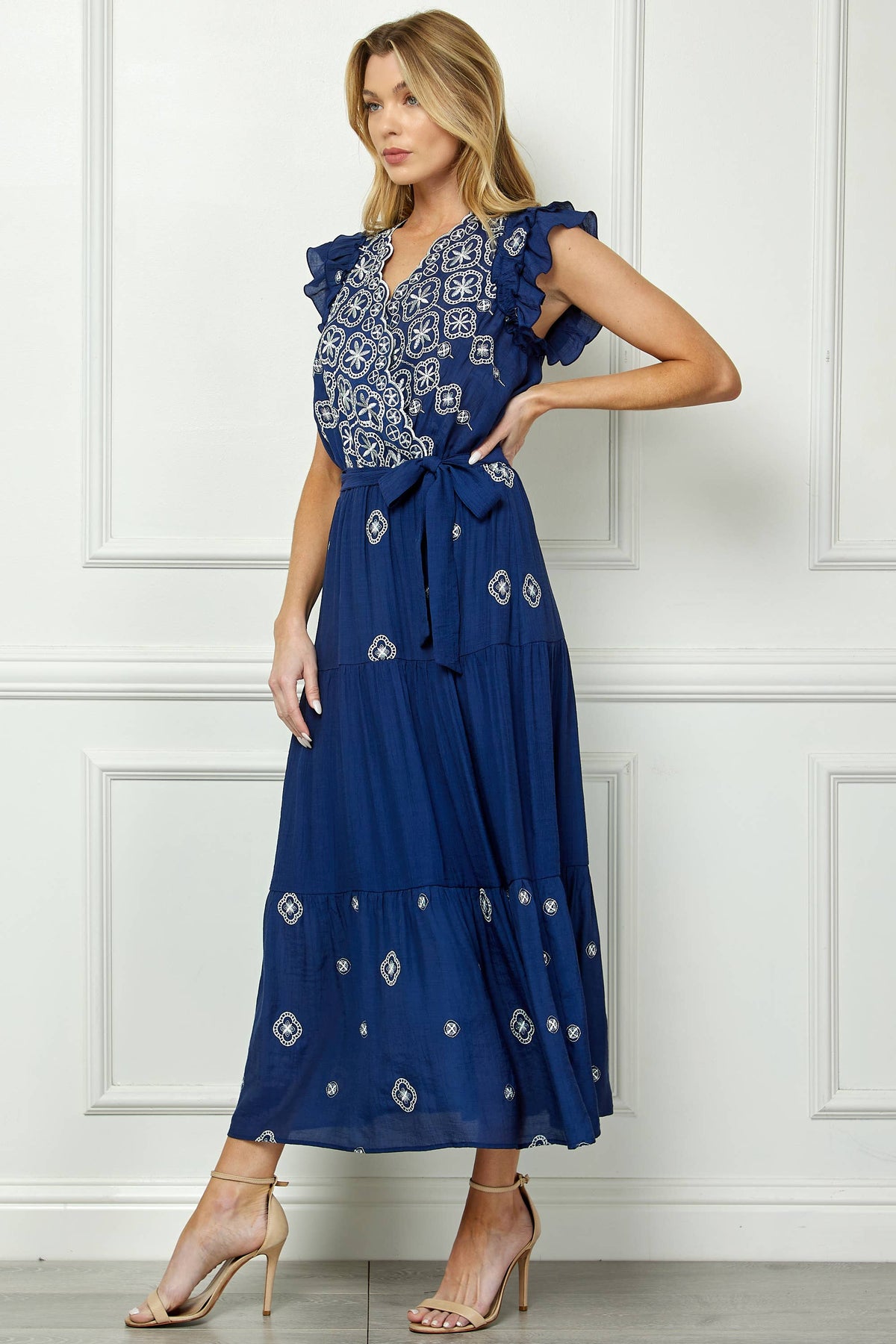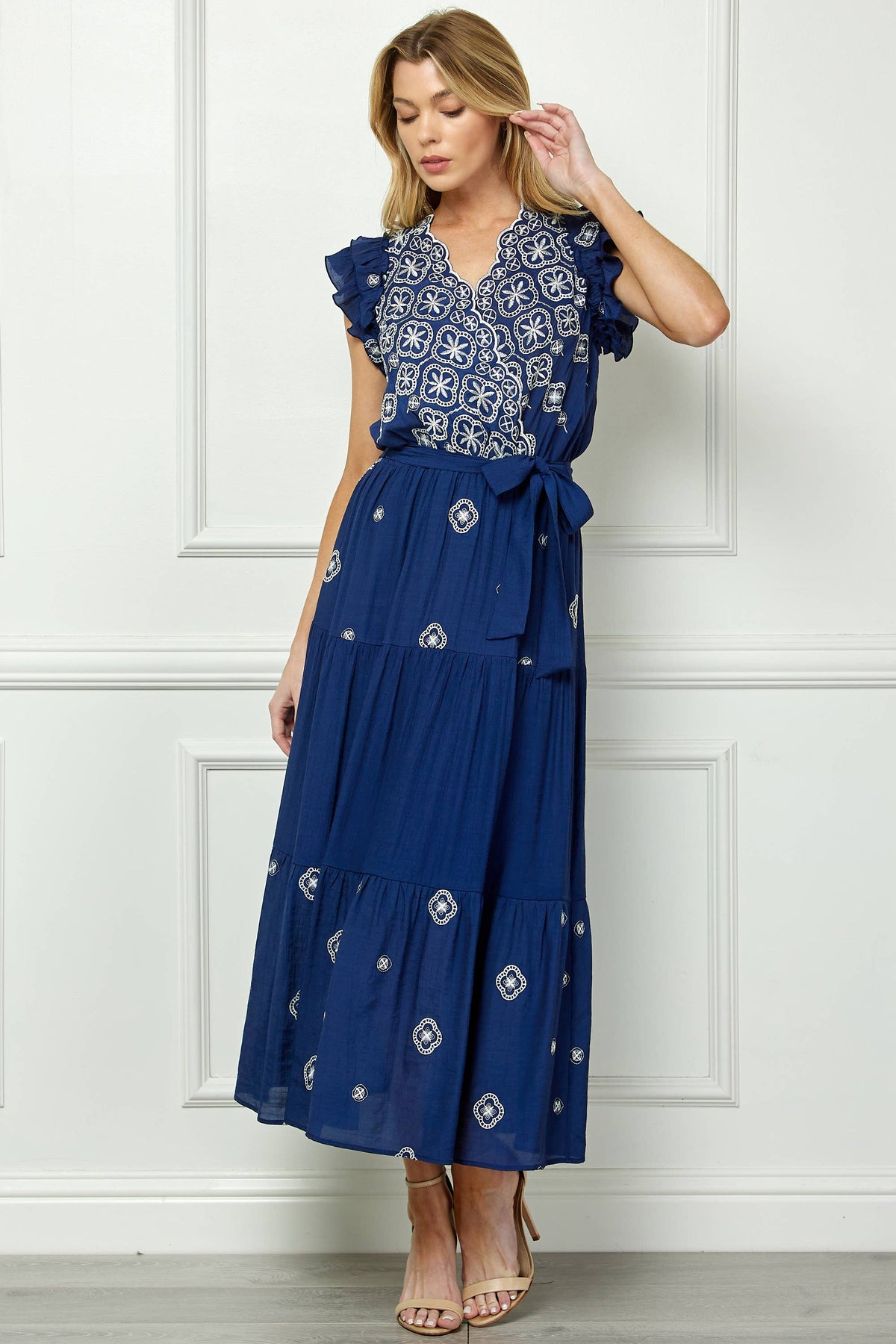 Step into whimsy with our Embroidered Peasant Dress, flaunting playful short ruffle sleeves! This dress blends classic charm with intricate embroidery and flirty ruffle details. Whether you're out for a casual stroll or dressing up for a fun occasion, it’s your go-to for effortless style and comfort. Add a splash of embroidered magic to your wardrobe and let your outfit do the talking!