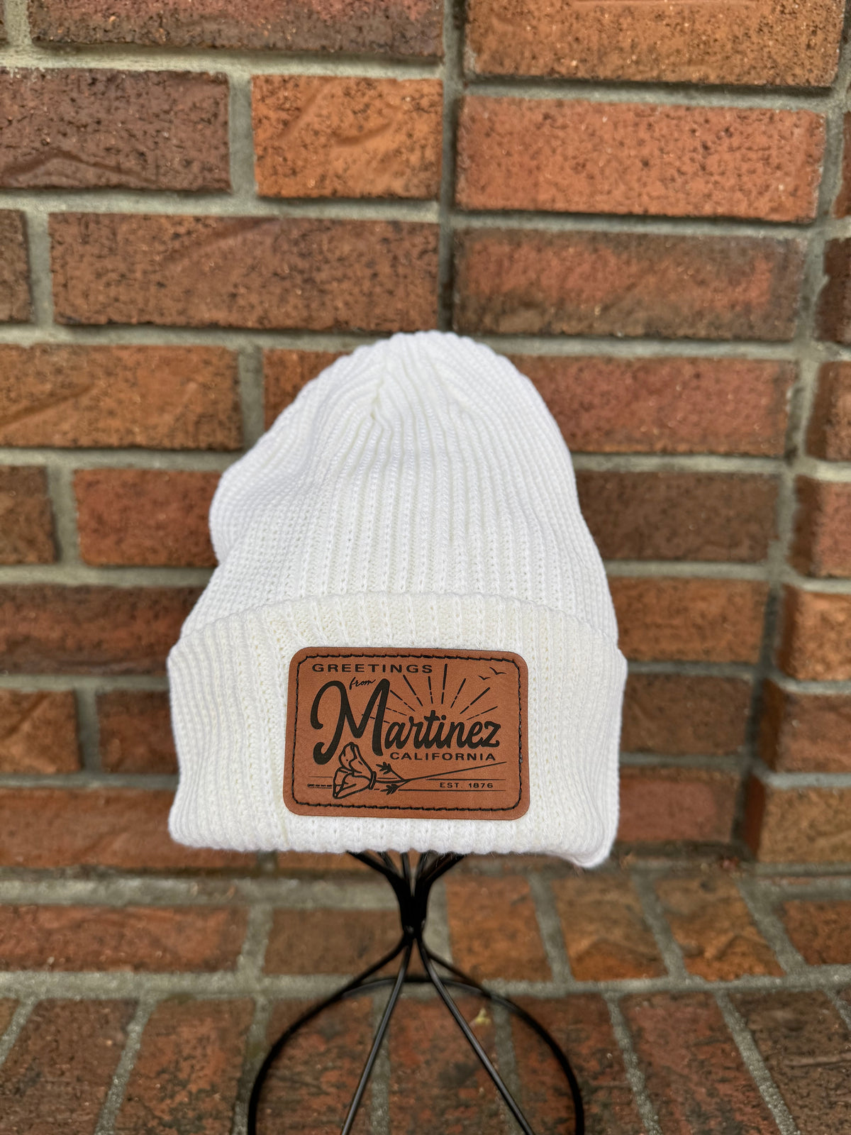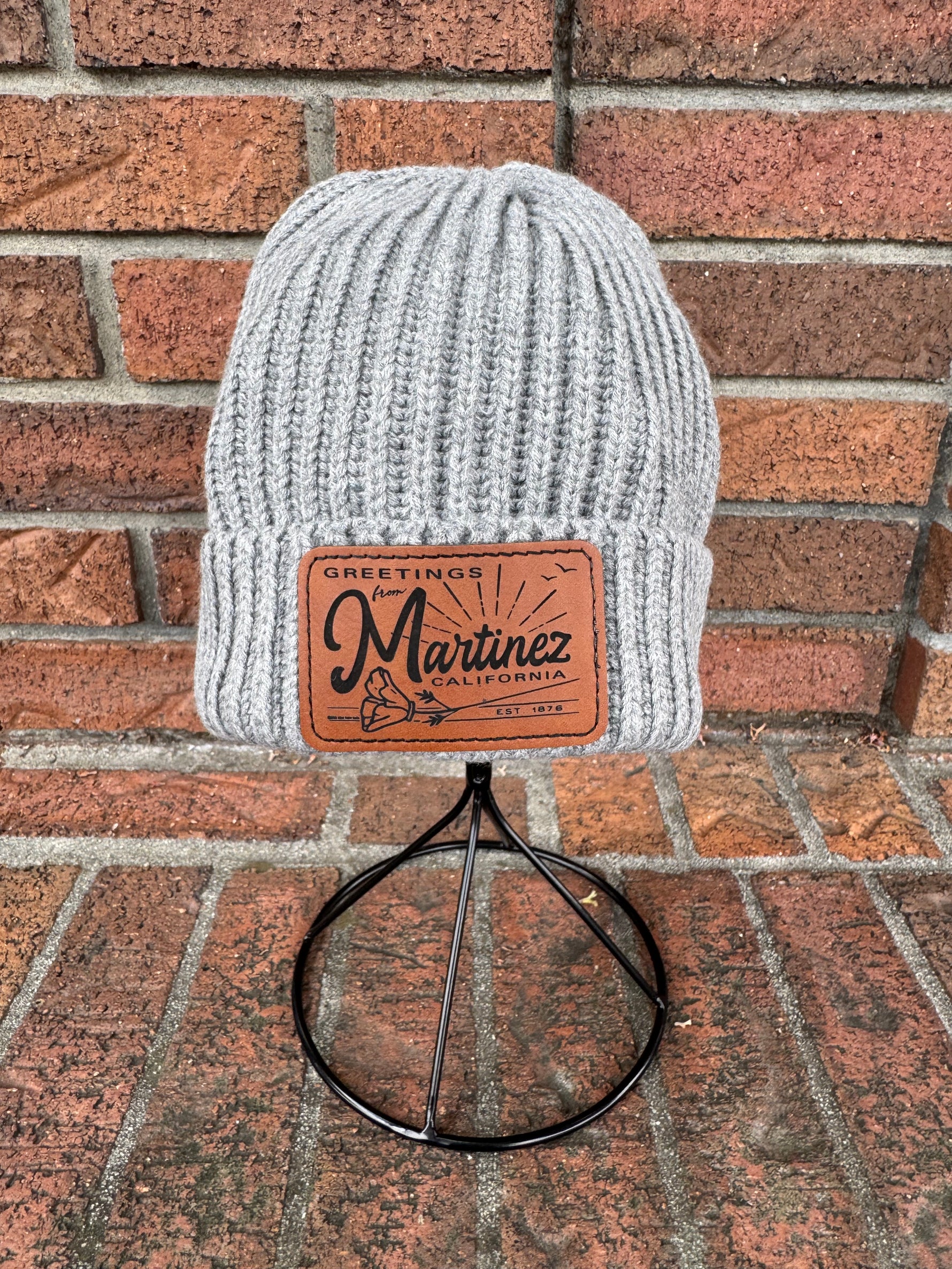 Unit price / perStay cozy and stylish with the Greetings from Martinez Beanie! This warm knit hat features a charming leatherette patch that adds a fun, local flair to your look. Perfect for chilly days when you want to keep your head snug and your vibe playful. Whether exploring town or just relaxing, this beanie brings a friendly hello with every wear.