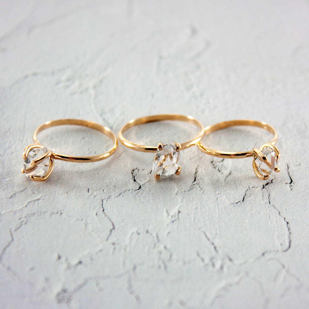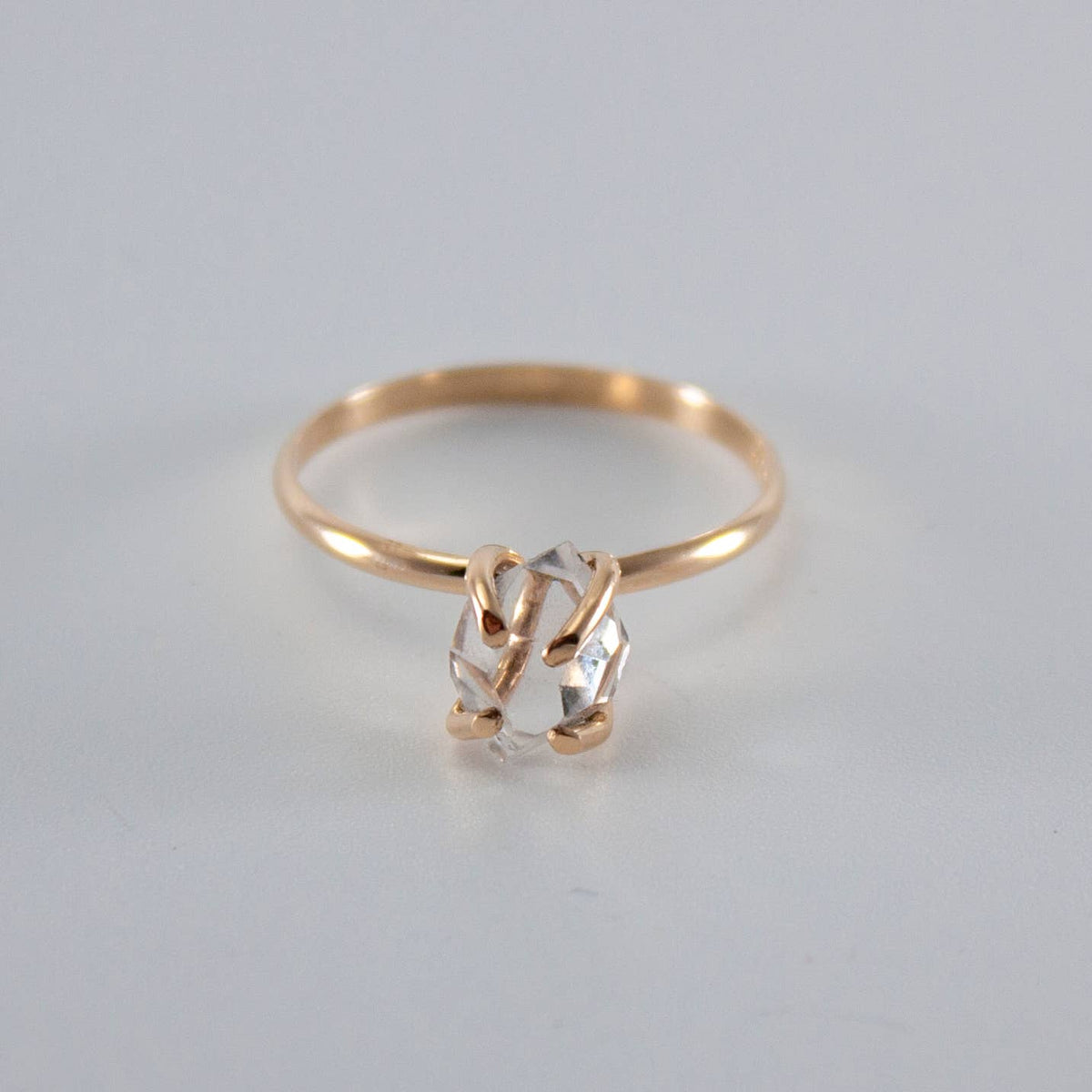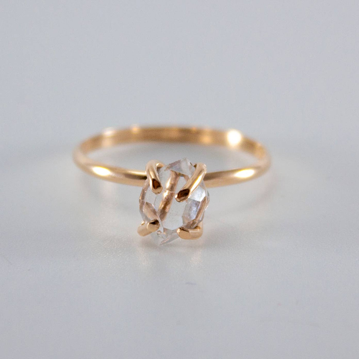 Handmade Prong Ring | Raw Herkimer Diamond 14k Gold Filled