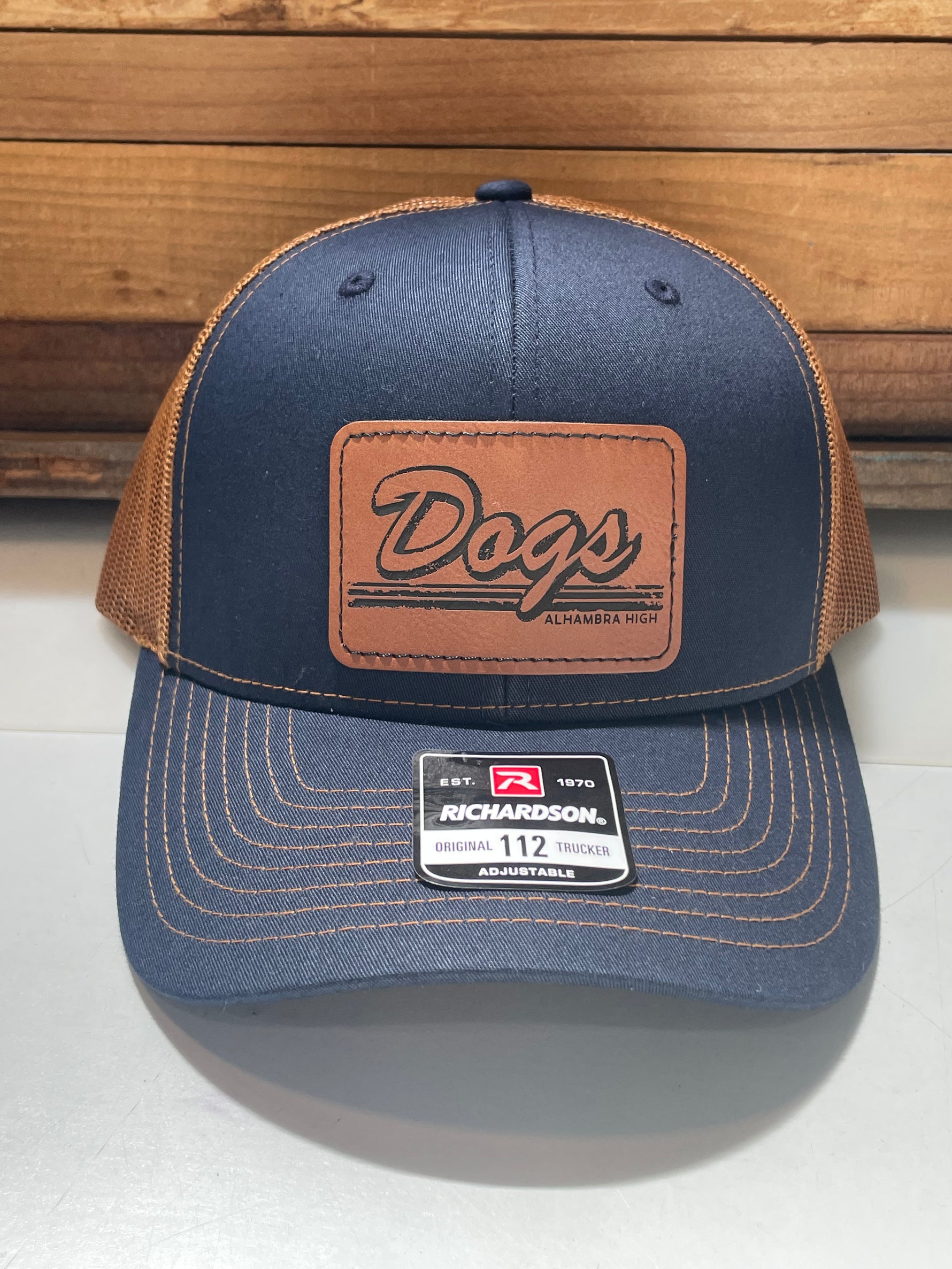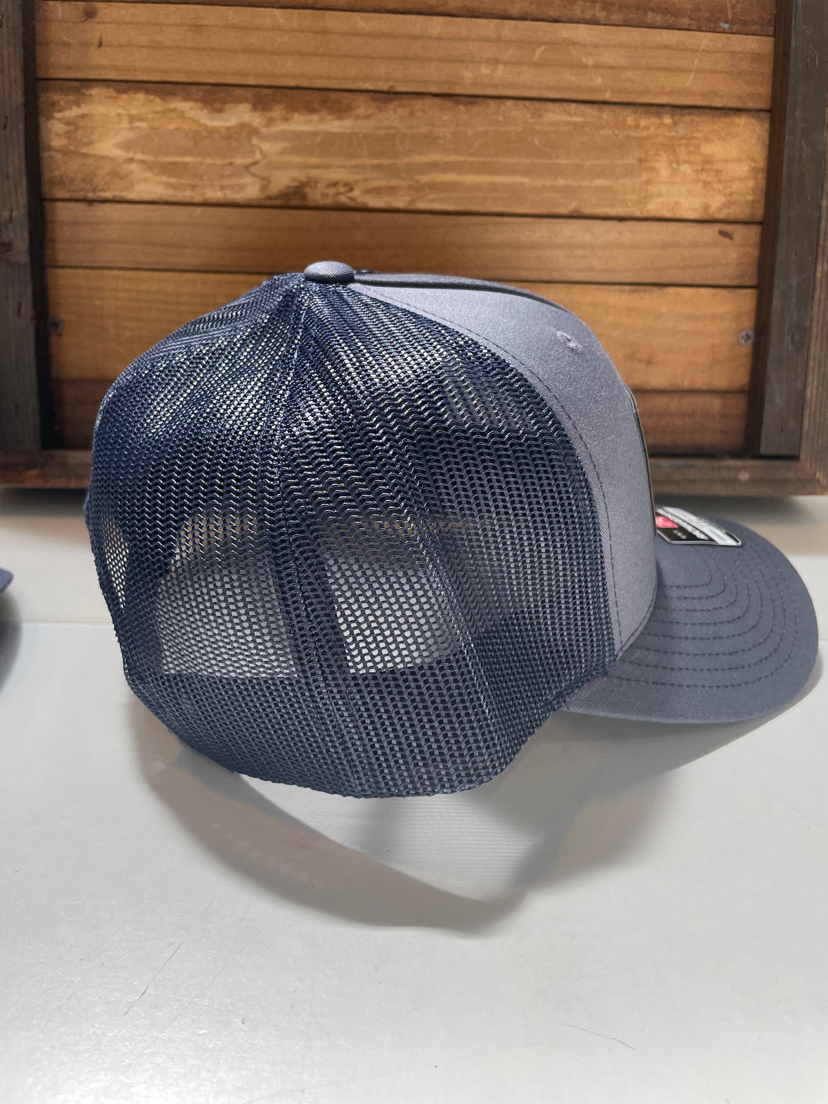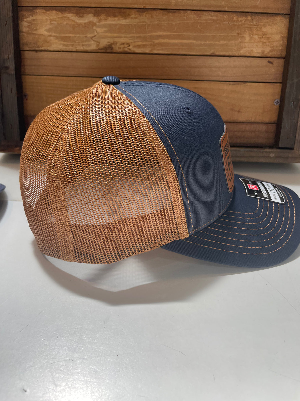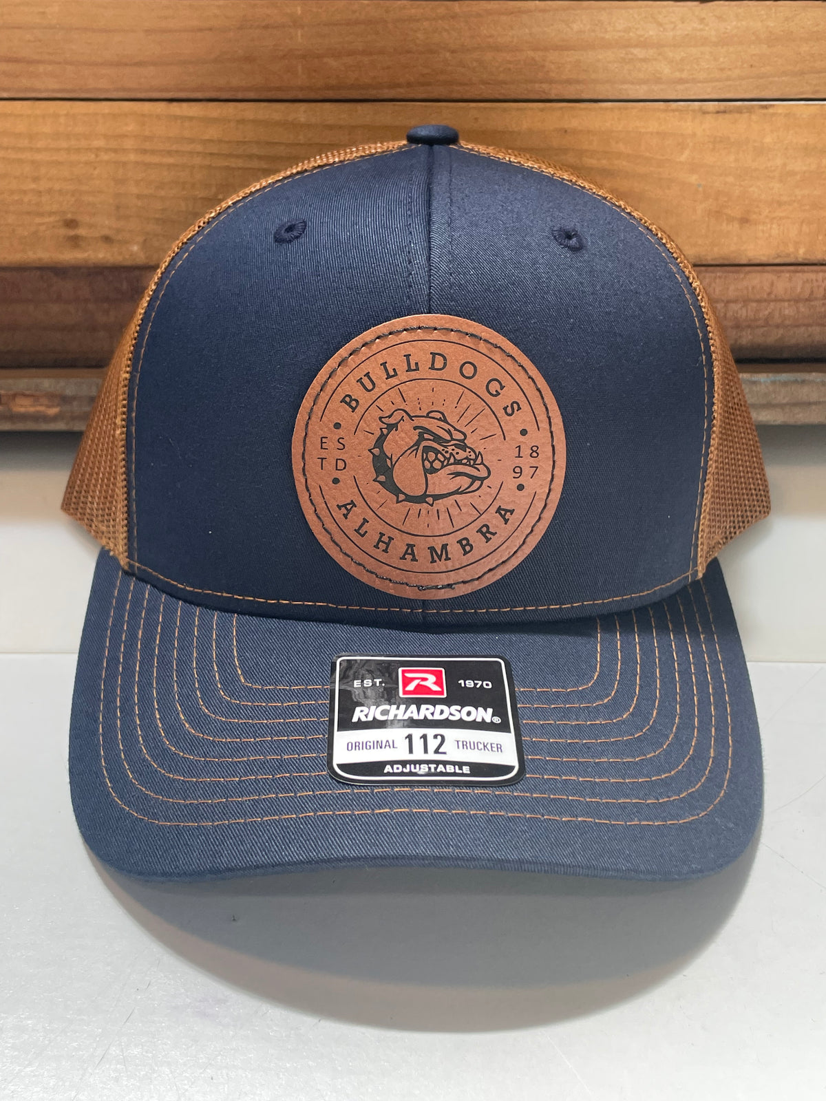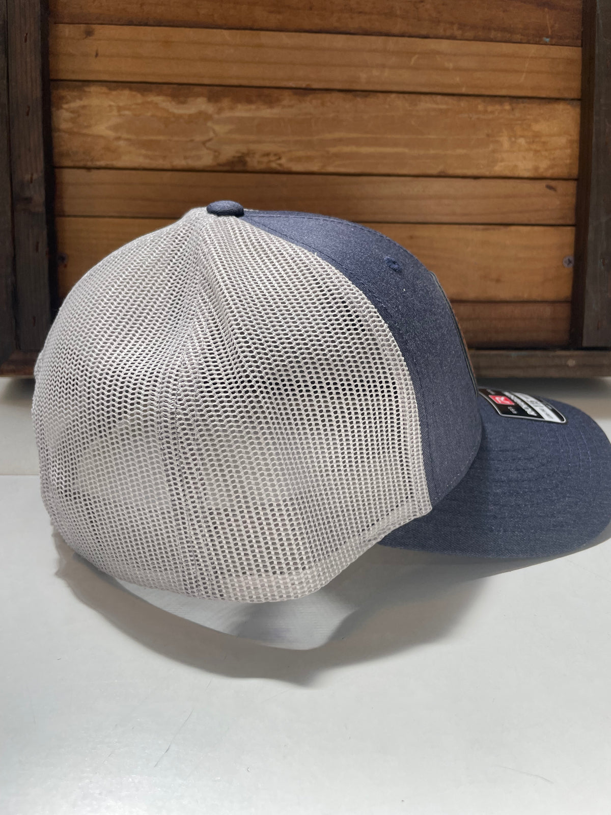 These Richardson Brand quality hats feature a custom laser-engraved vegan leather patch in one of three design options. The 115 style has a slightly lower crown than the 112 style.