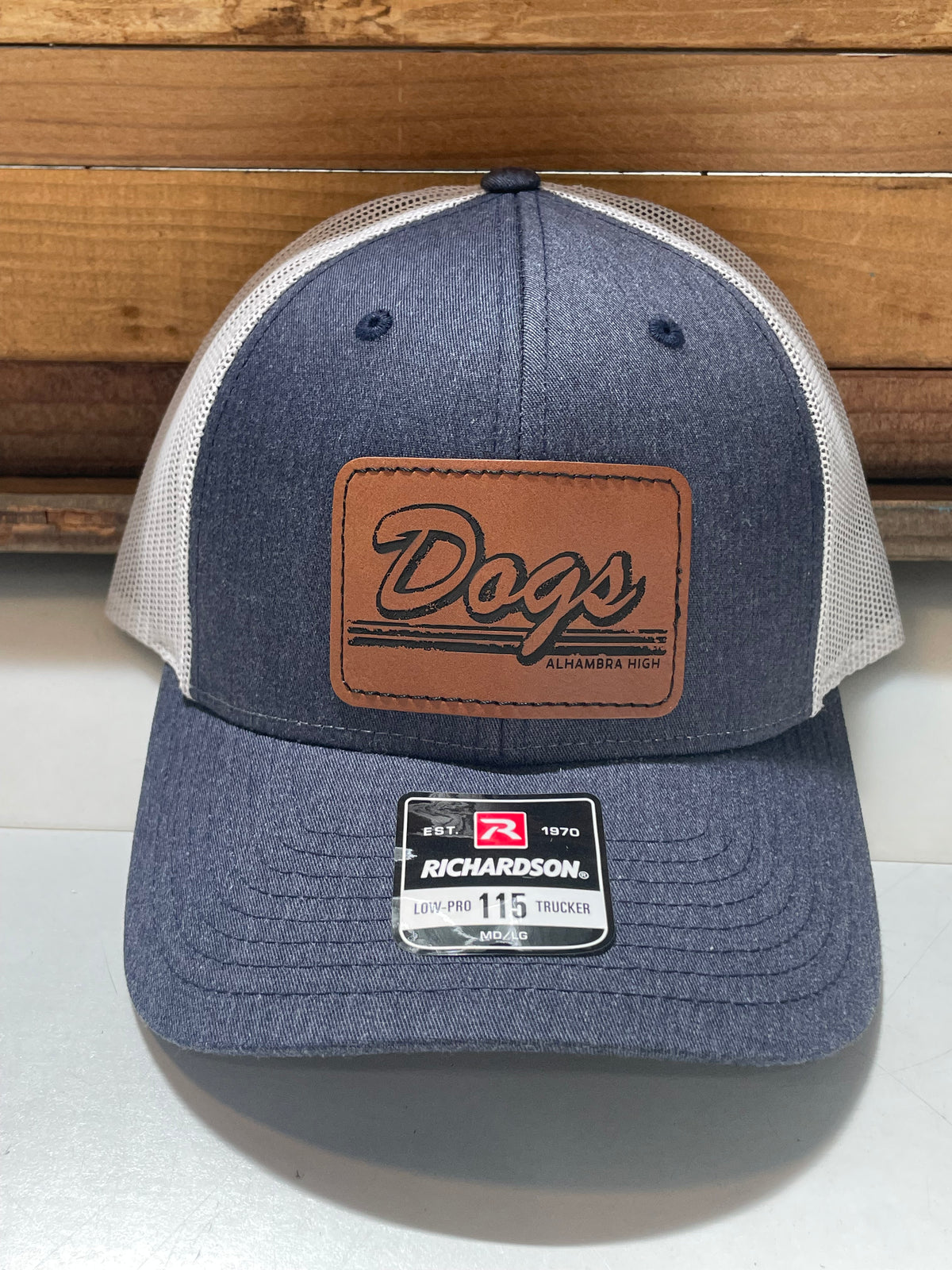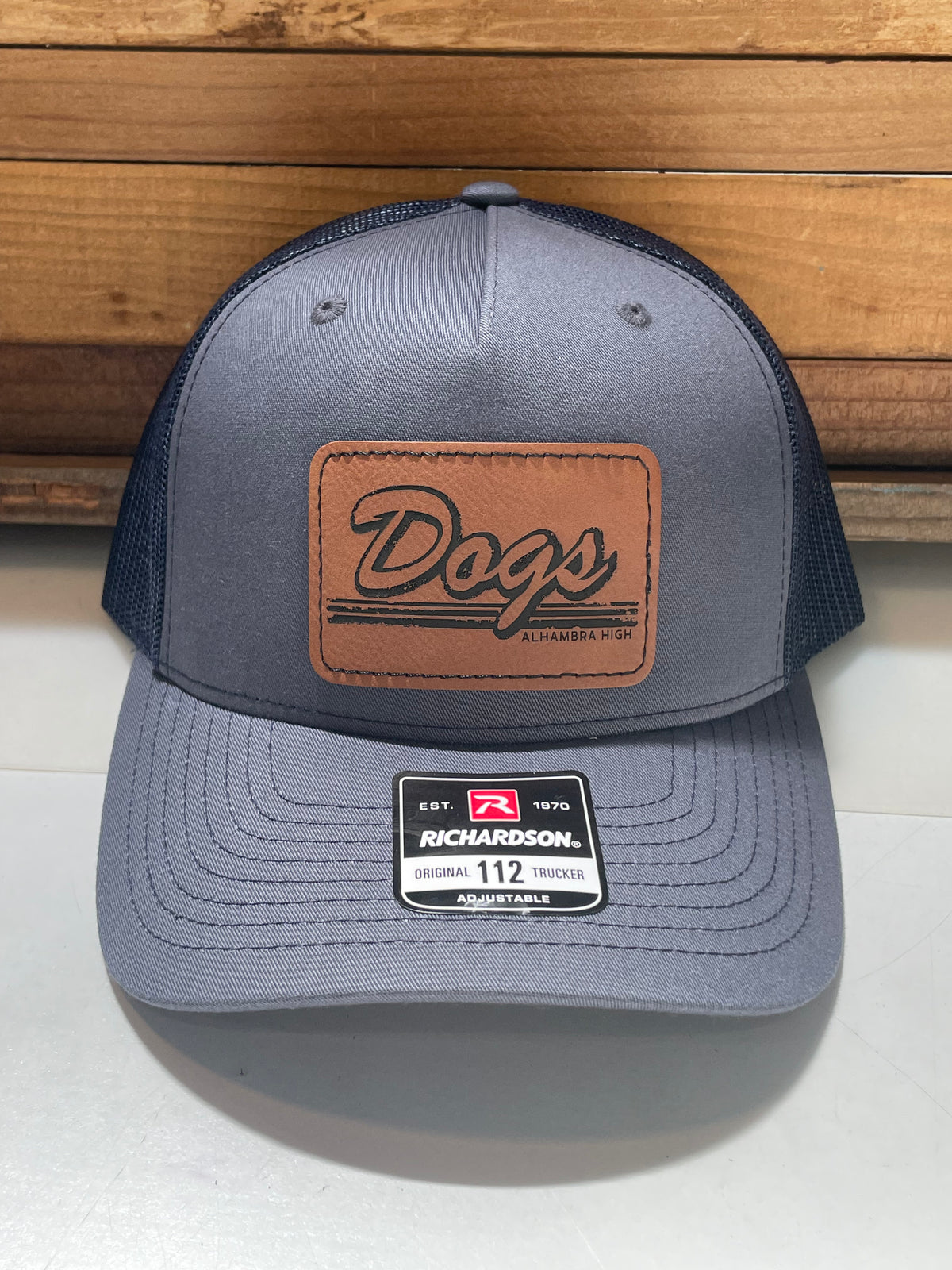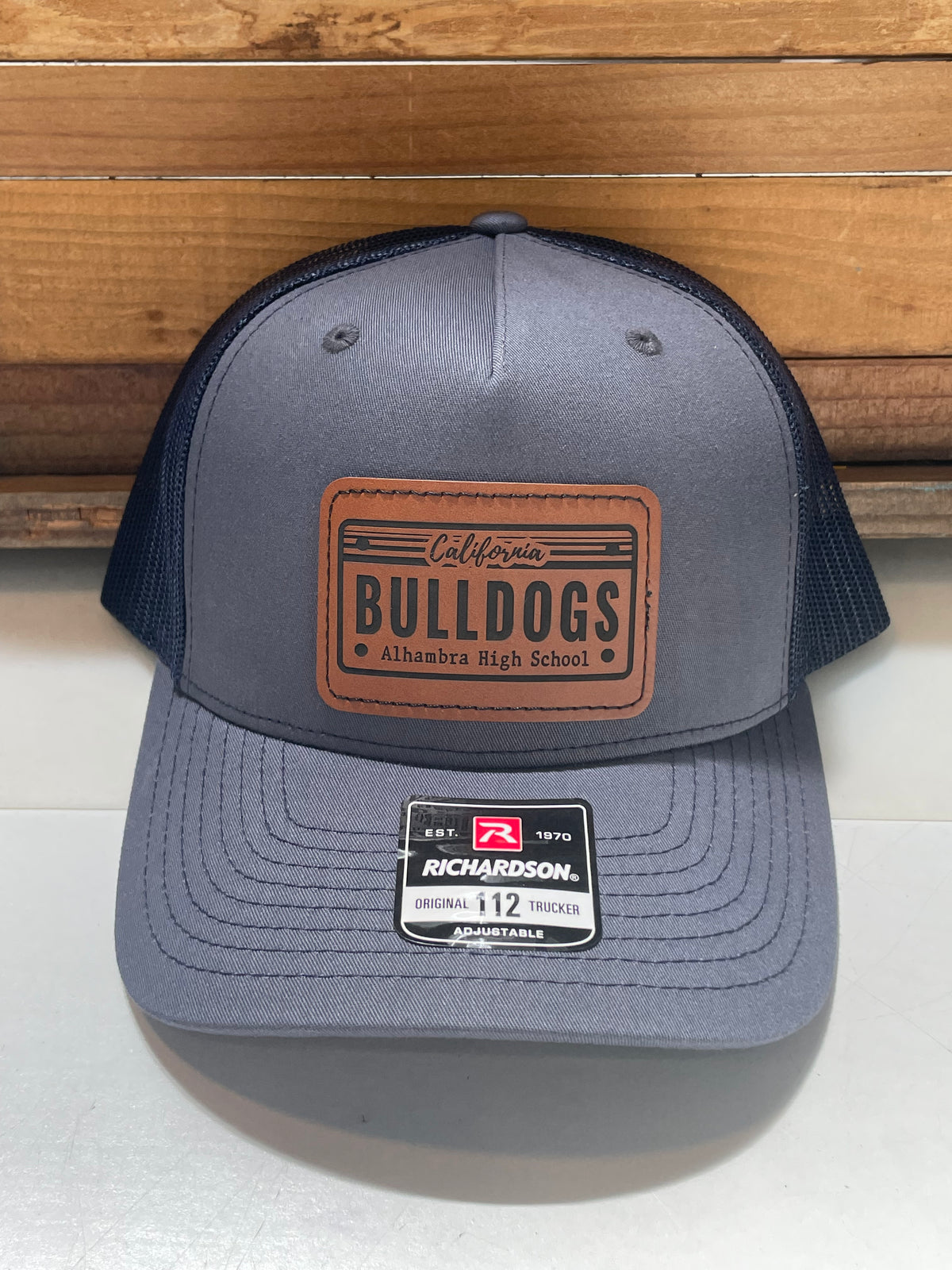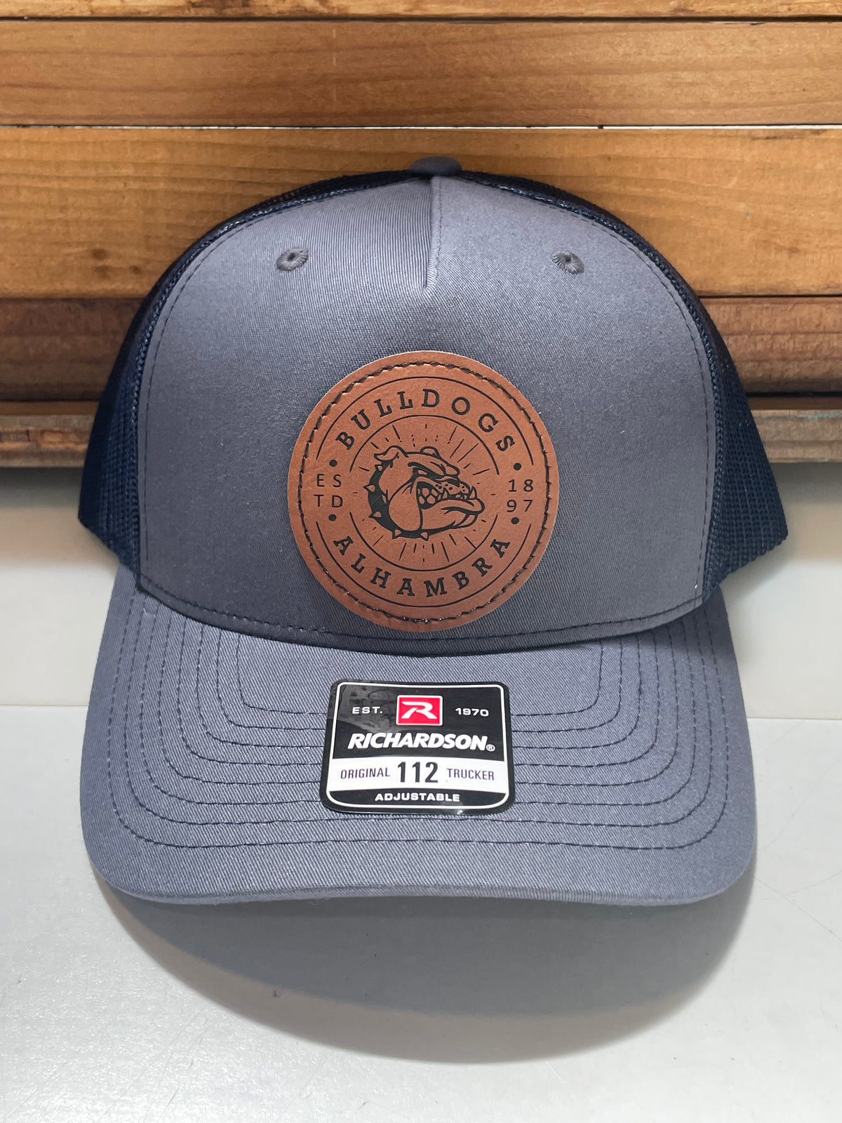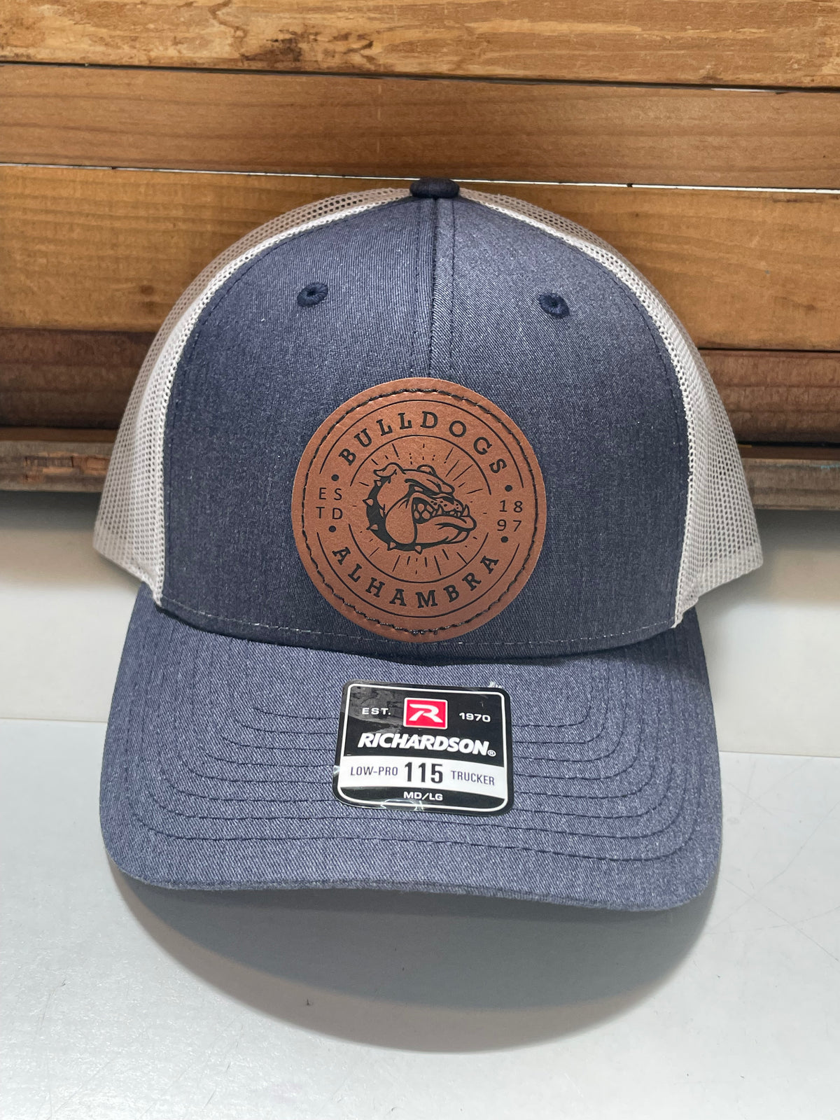 These Richardson Brand quality hats feature a custom laser-engraved vegan leather patch in one of three design options. The 115 style has a slightly lower crown than the 112 style.