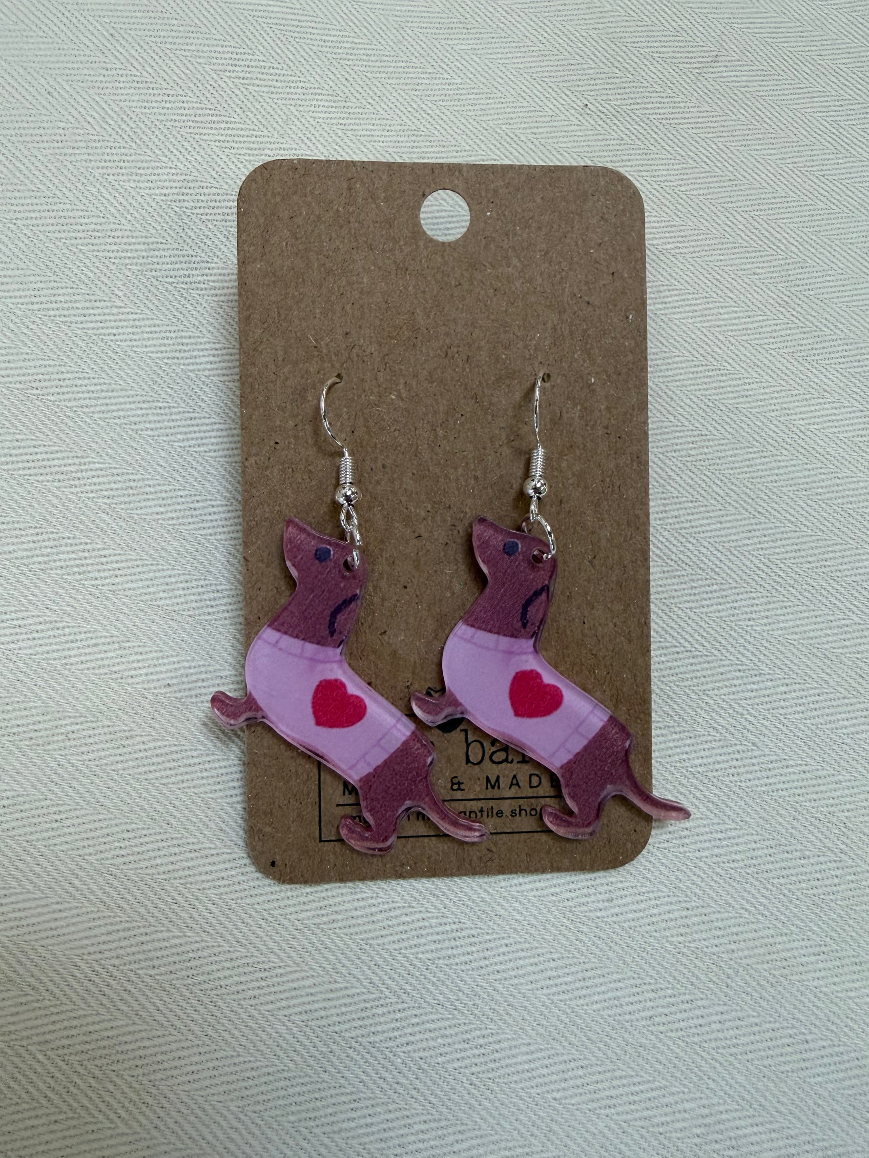 Unit price / perAdorable dachshund heart earrings that celebrate your love for man's best friend! These charming dangles feature a playful design perfect for dog lovers who want to wear their passion. Crafted with stainless steel posts for comfortable, everyday wear, these earrings won't irritate sensitive ears. The sweet dachshund motif paired with a heart shape makes them an ideal gift for fellow wiener dog enthusiasts or a delightful treat-yourself moment. Whether you're heading to brunch or a casual hangout, these fun earrings add personality and warmth to any outfit.