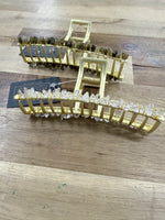 Elevate your hair game with this stunning gold metal claw clip that's equal parts practical and fabulous. Measuring a perfect 4.25 inches, it's sized just right to grip and hold your hair securely throughout the day. Choose between sparkling clear crystals that catch the light beautifully or mystical Labradorite stone for an earthy, magical vibe. Whether you're styling a sleek updo, securing a half-up look, or just keeping your hair out of your face in style, this accessory delivers both function and flair. The lustrous gold finish pairs effortlessly with any outfit, making it your go-to clip for everything from casual days to special occasions. A little sparkle never hurt anyone—grab yours today and let your hair shine.