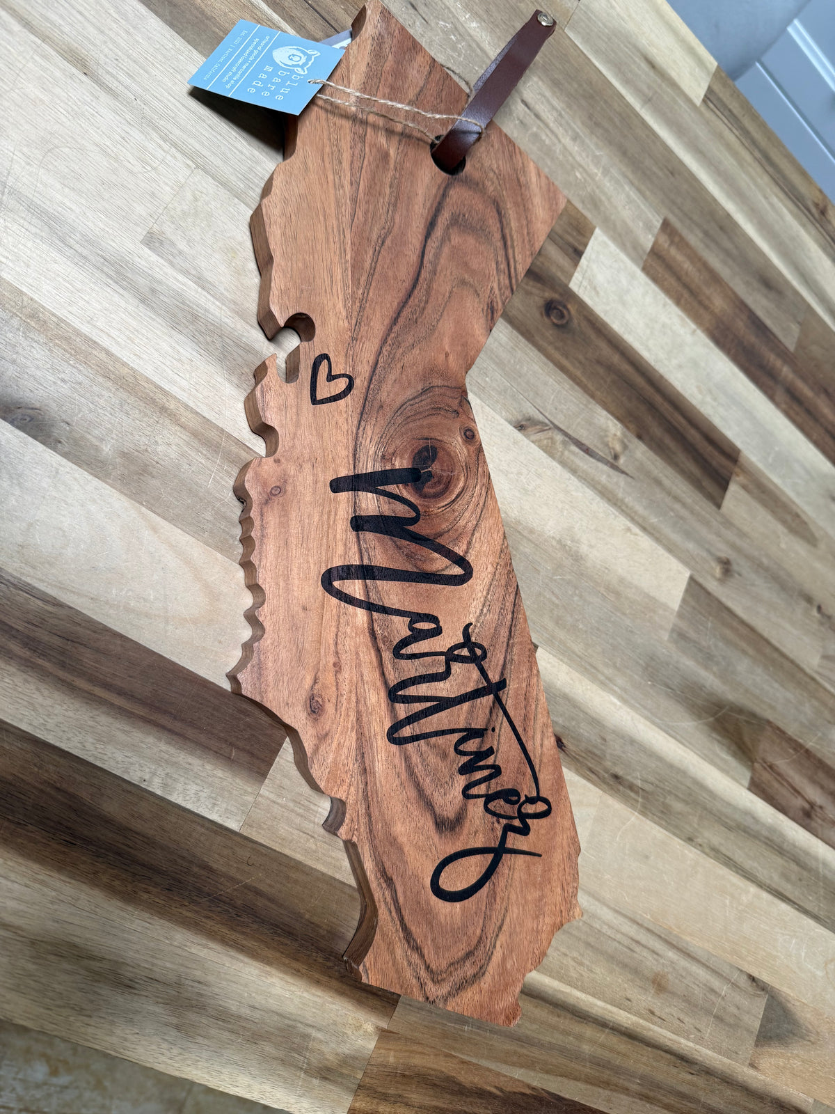 Martinez Engraved California Shaped Acacia Board